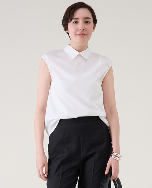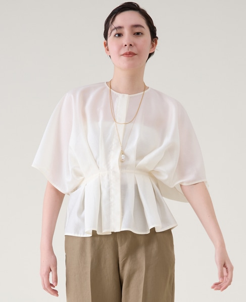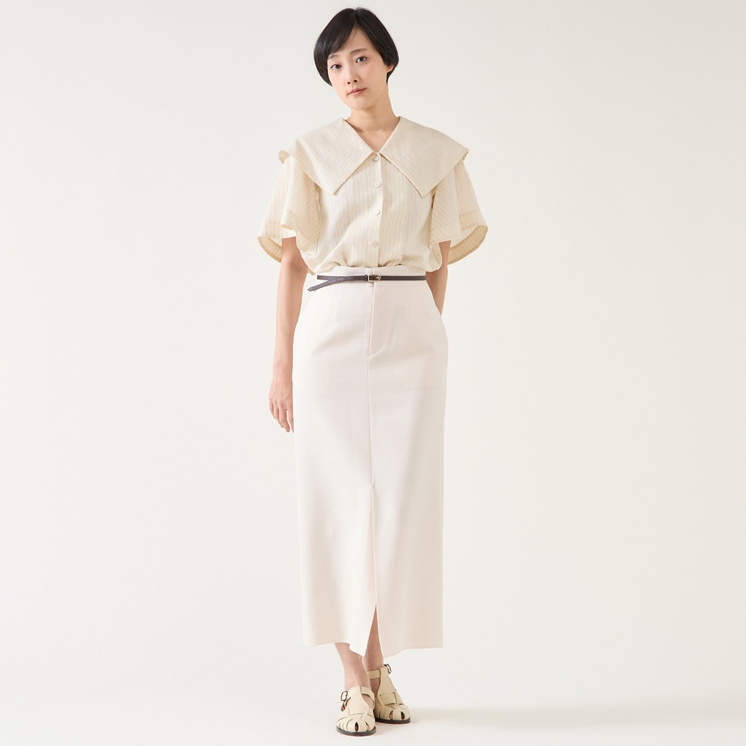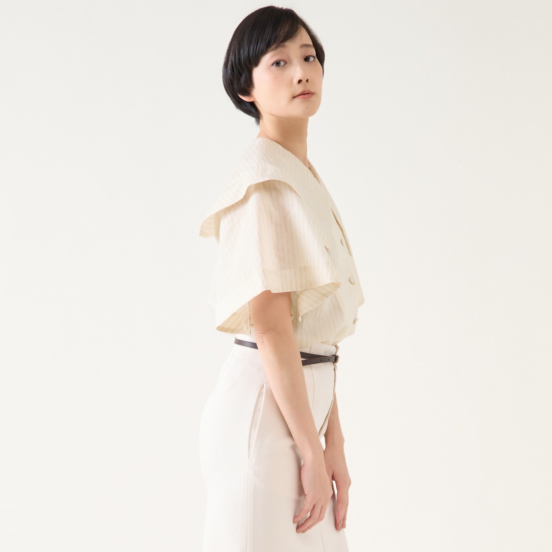 大きな襟がポイントになってクラシックな雰囲気のとろみブラウス。袖下にはスリットが入っており、夏も涼しくご着用いただけます。