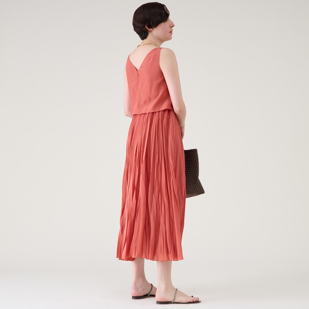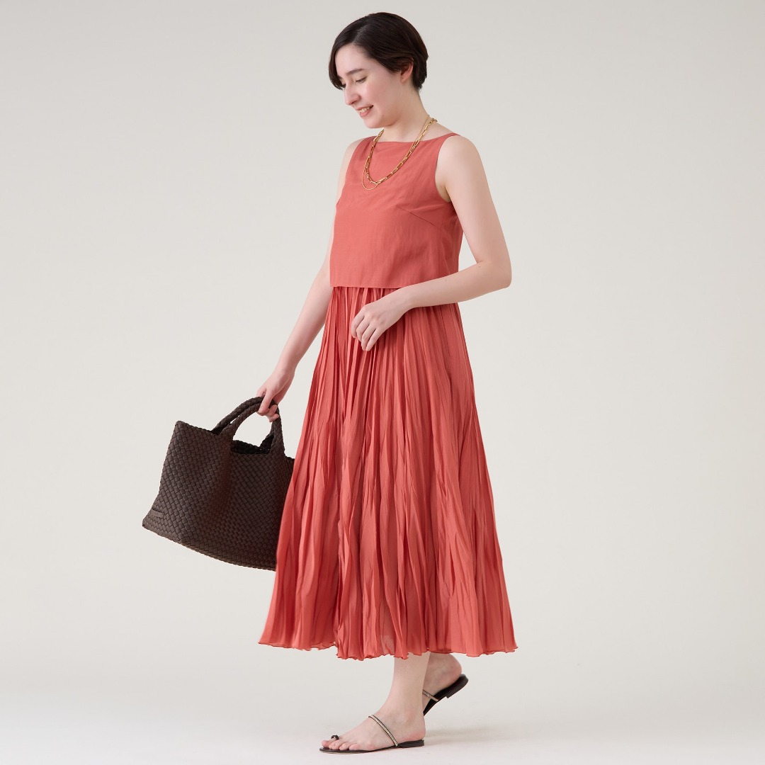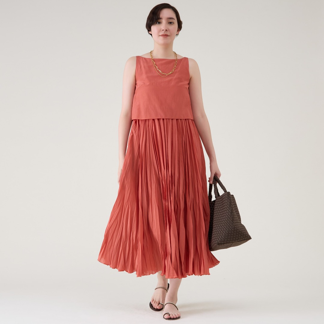 クロップド丈のタンクトップとスカートを組み合わせたようなデザインのワンピース。スカート部分にはプリーツ加工が施されており、動きのある表情をプラス。軽やかな着心地で、ご自宅で手洗いできるイージーケアも魅力です。