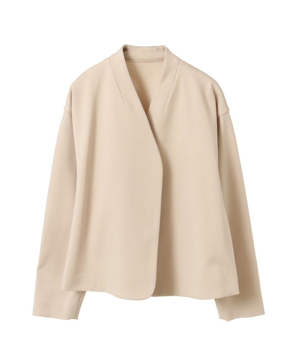 立ち襟で、打ち合わせの深いVカラーが大人な印象のジャケット。肉感とキックバックの良い、拘ったポンチ素材でジャケットの提案です。ストレスないサイズ感がシーンを問わず着ていただけます。