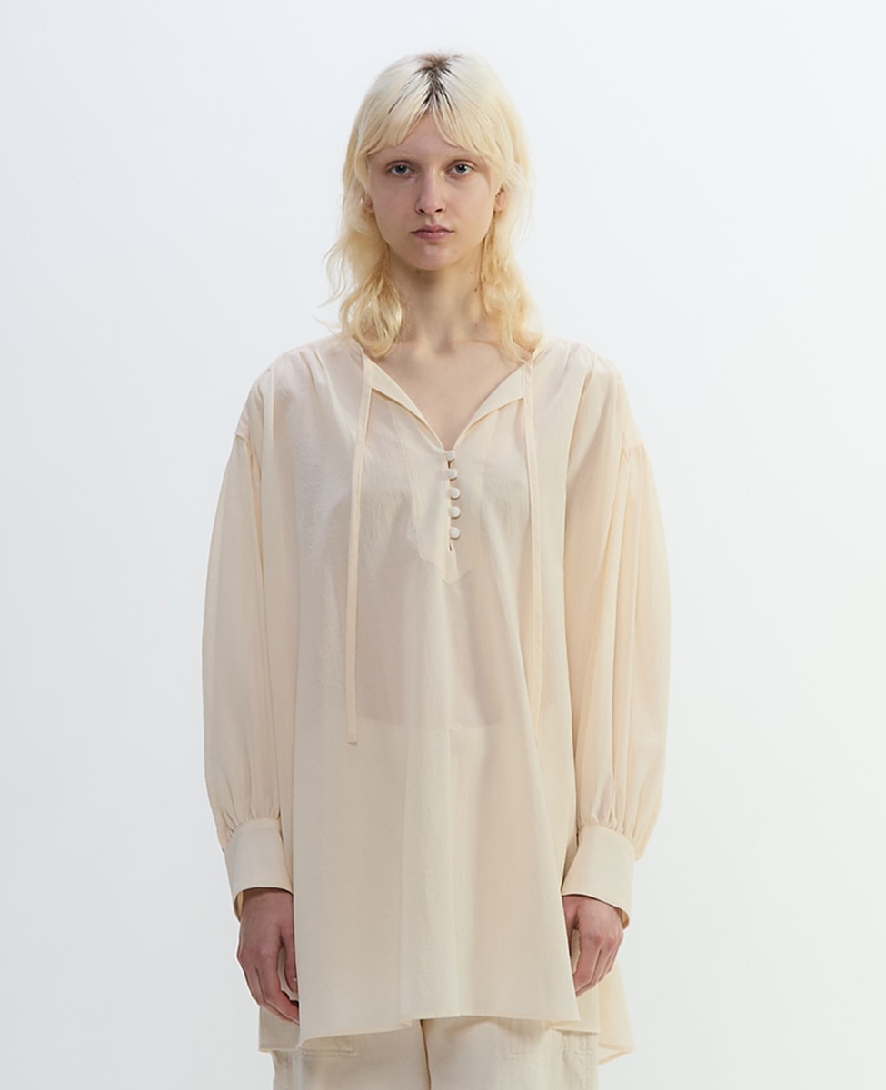 コットンボイルガーゼタンブラースモックブラウス