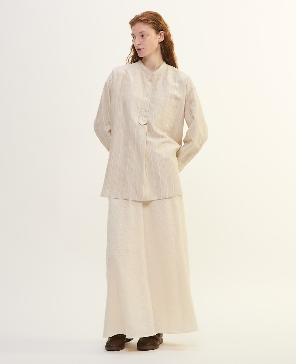 ウールリネンコットンワッシャーバイヤスストレートスカート