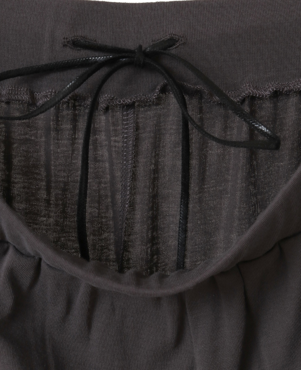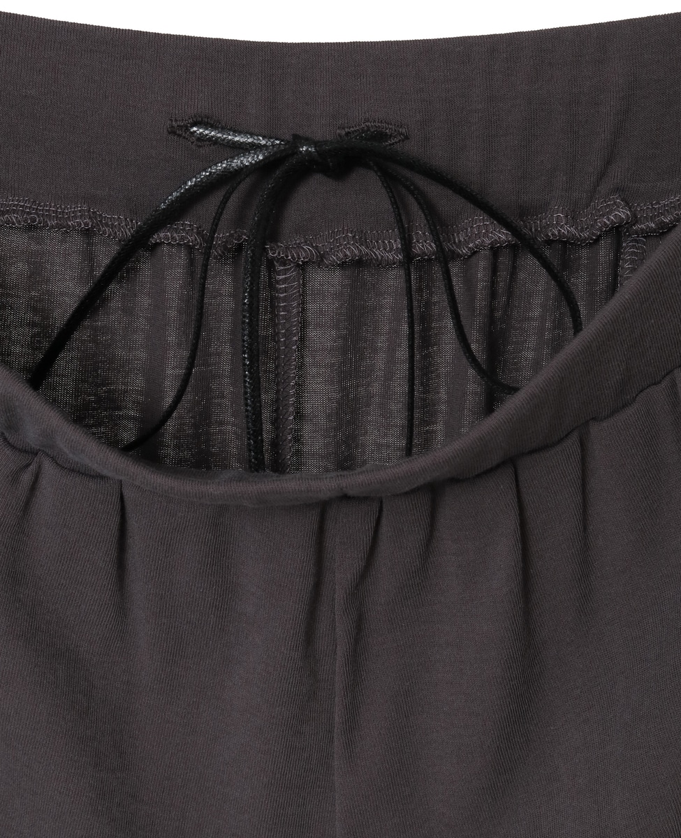 ーシックなトレーニングパンツ型デザイン。カルフォルニアのサンホーキンバレーの雪解け水で育った綿花を使用し、超強撚に撚糸したシアーで清涼感のあるジャージ素材は、ソフトな風合いと発色が特徴で吸水性にも優れており夏素材としてぴったりです。強撚は、本来ジャリジャリした質感ですが、原料のソフトな風合いにより柔らかい仕上がりです。超強撚天竺と同原料のフライス素材になり透けを気にせずおめしいただけます。