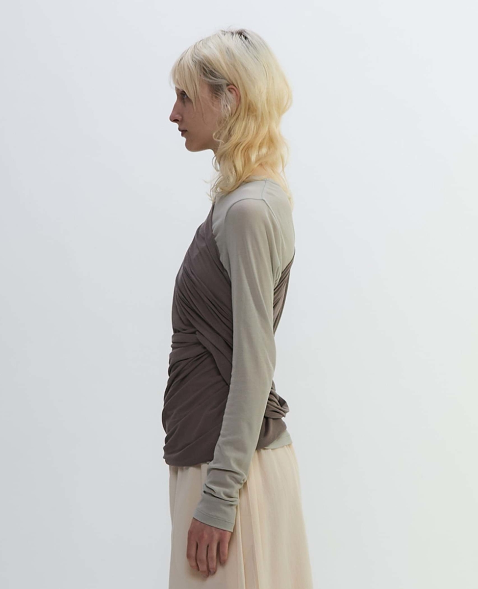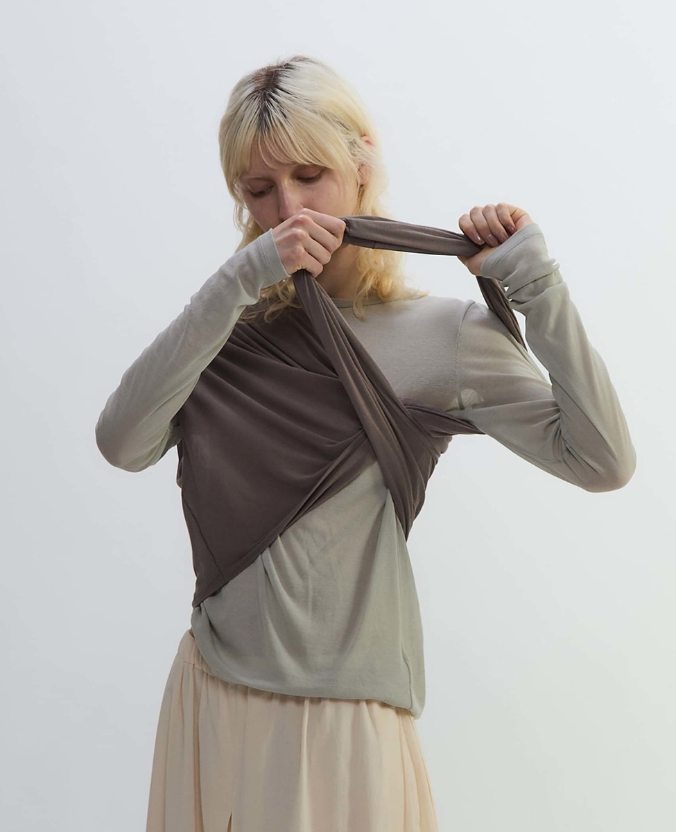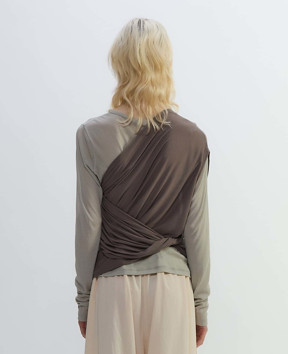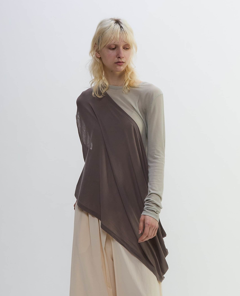 シア―ハイツイストフライスショール型レイヤードTシャツ