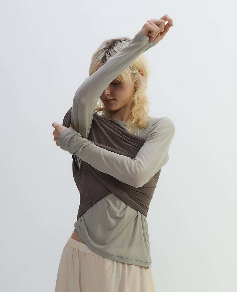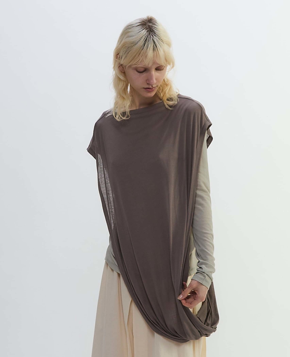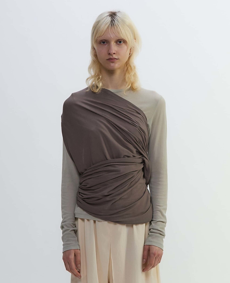 シア―ハイツイストフライスショール型レイヤードTシャツ