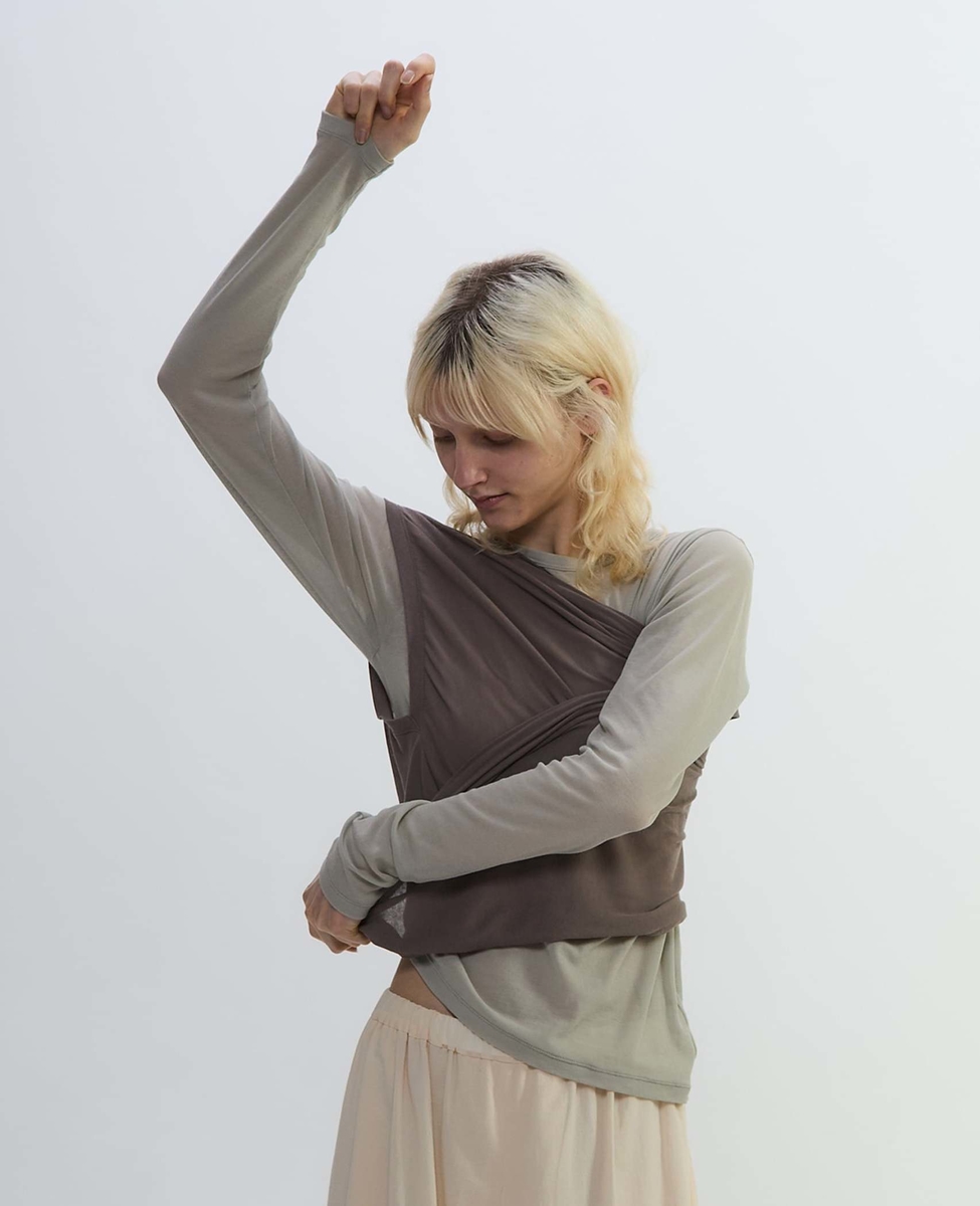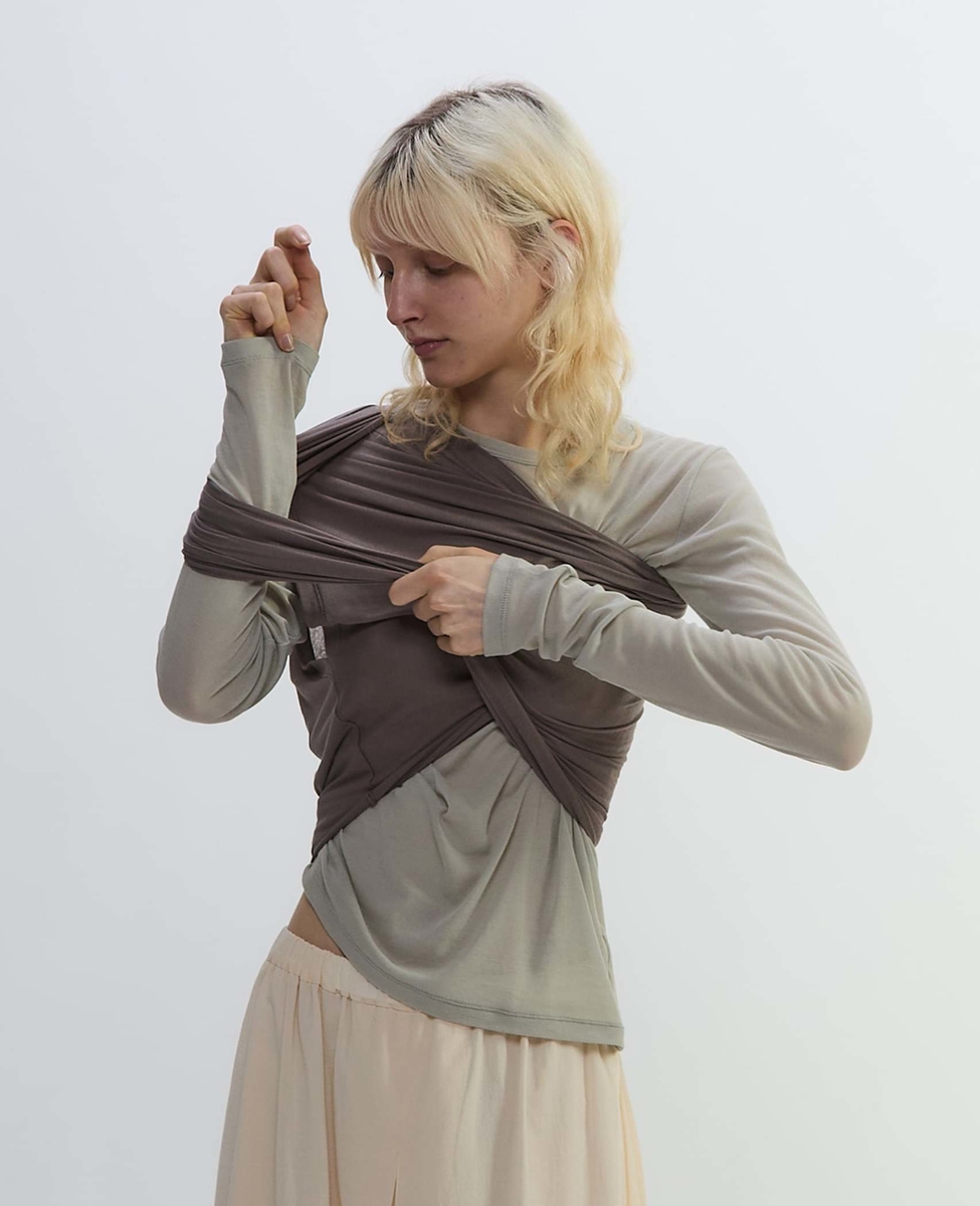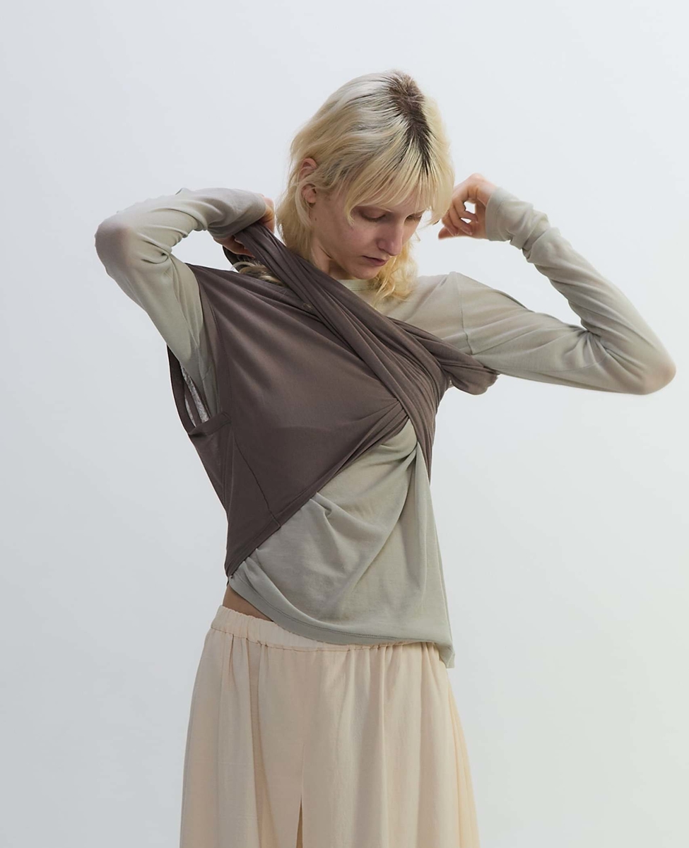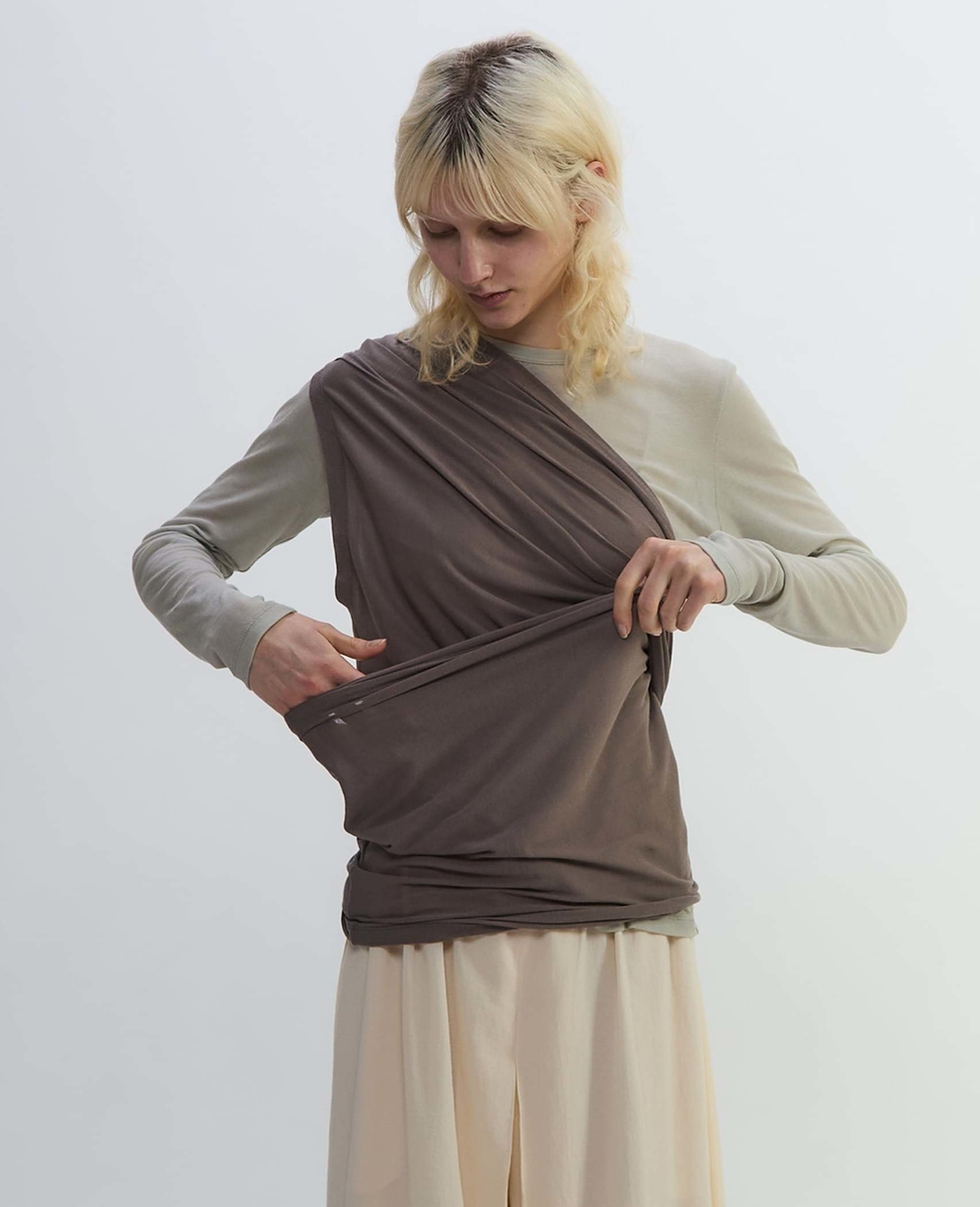 シア―ハイツイストフライスショール型レイヤードTシャツ