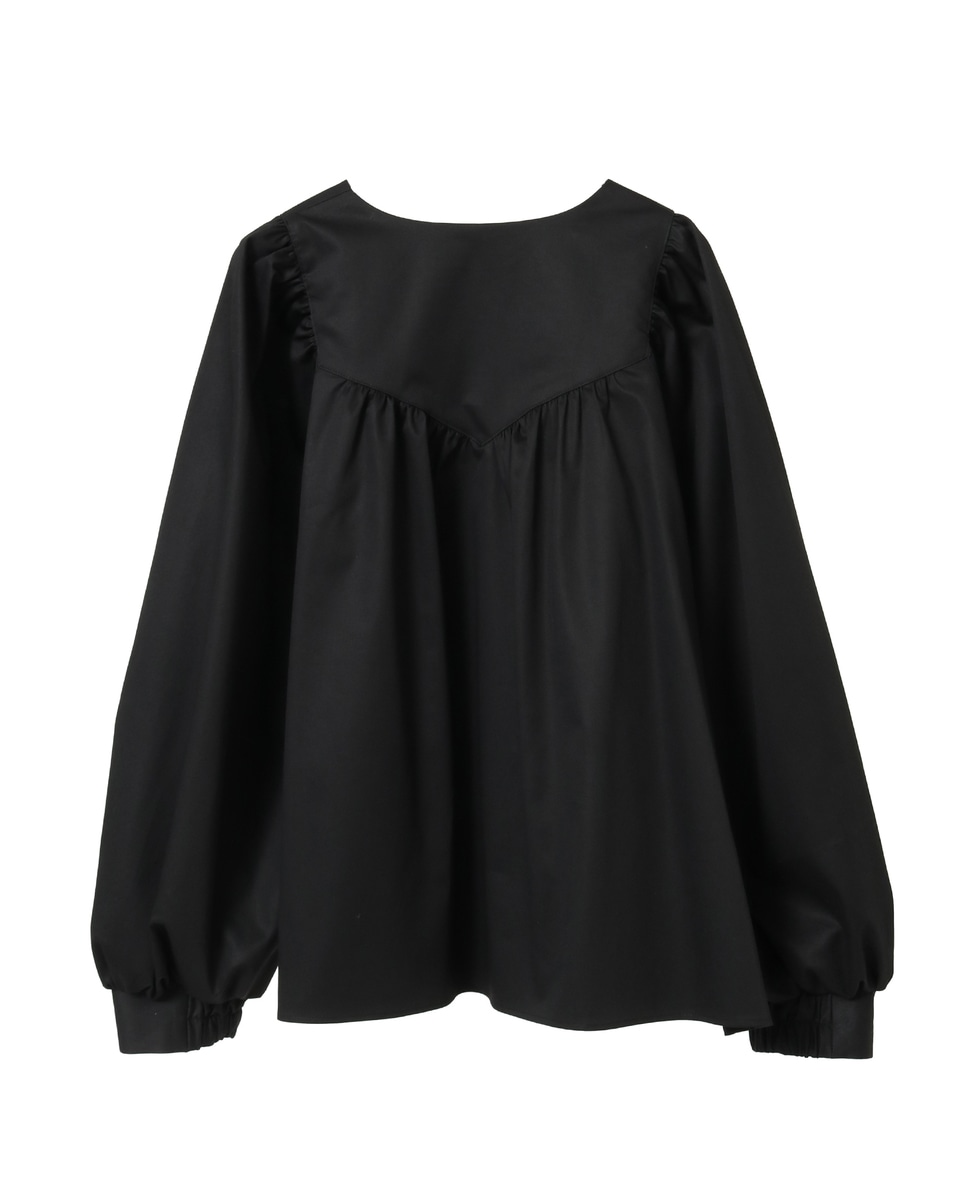 コットンラチネ・タイプライターストライプギャザーブラウス