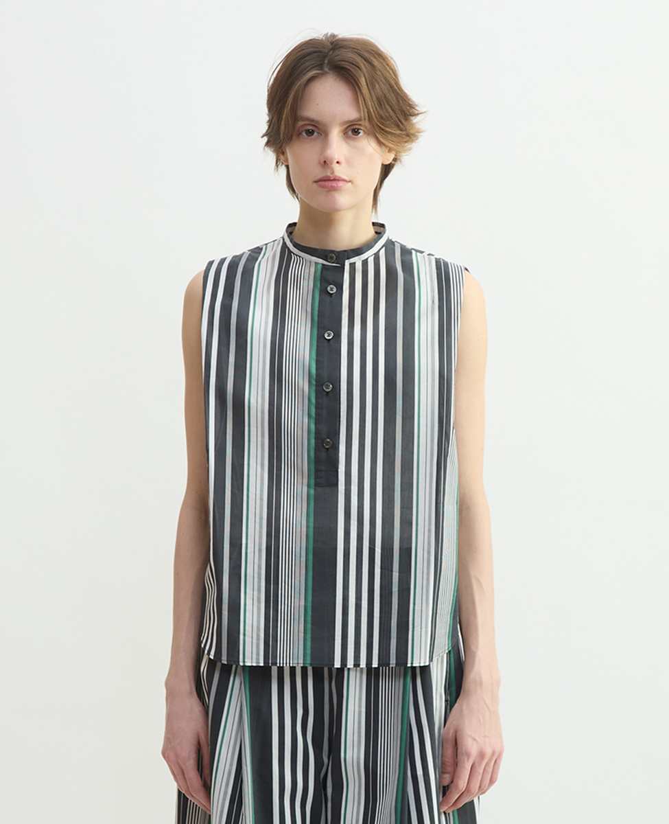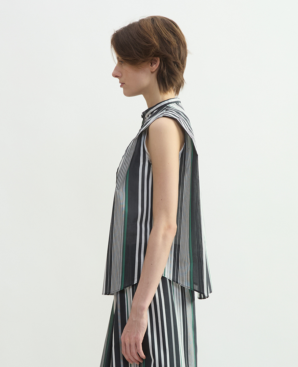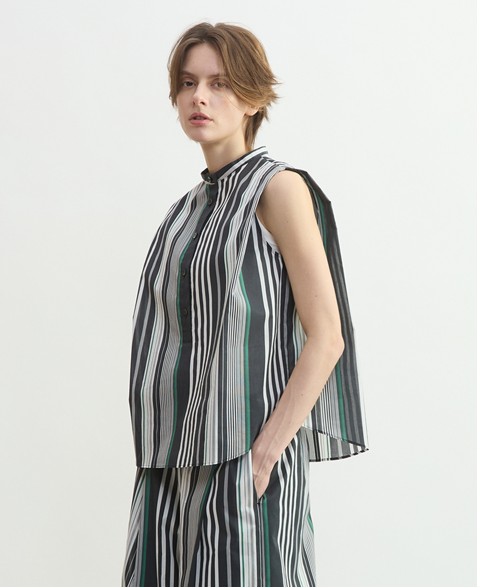 ストライプノースリーブブラウス