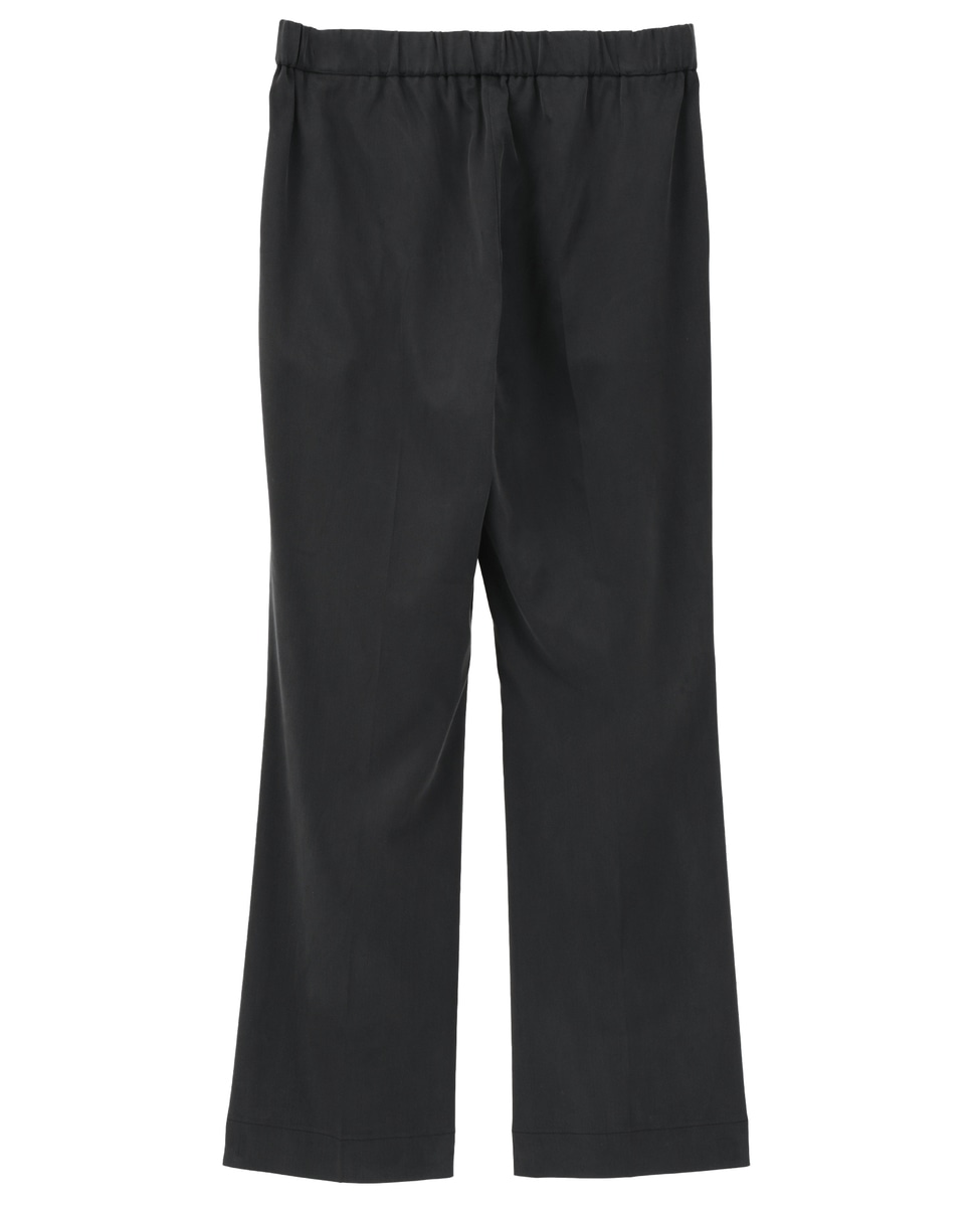 キュプラのストレッチ生地をフィブリル加工し、ヴィンテージ感をだしました。キックバックが良くキュプラならではのしっとりとした肌なじみの良さが特徴です。少し裾が広がったクロップ丈のトレンドシルエットパンツ。ウエストはゴムで履きやすくレギンスパンツの様な印象です。