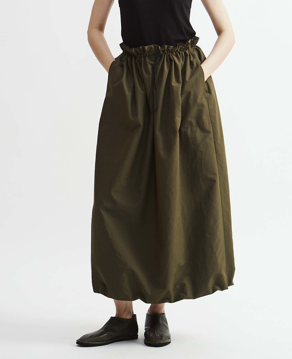 裏側をさらりとしたメッシュ裏地で吊ったバルーンシルエットのスカート。機能性がありながらラフ過ぎないアイテムとしてデイリーにおすすめです。
