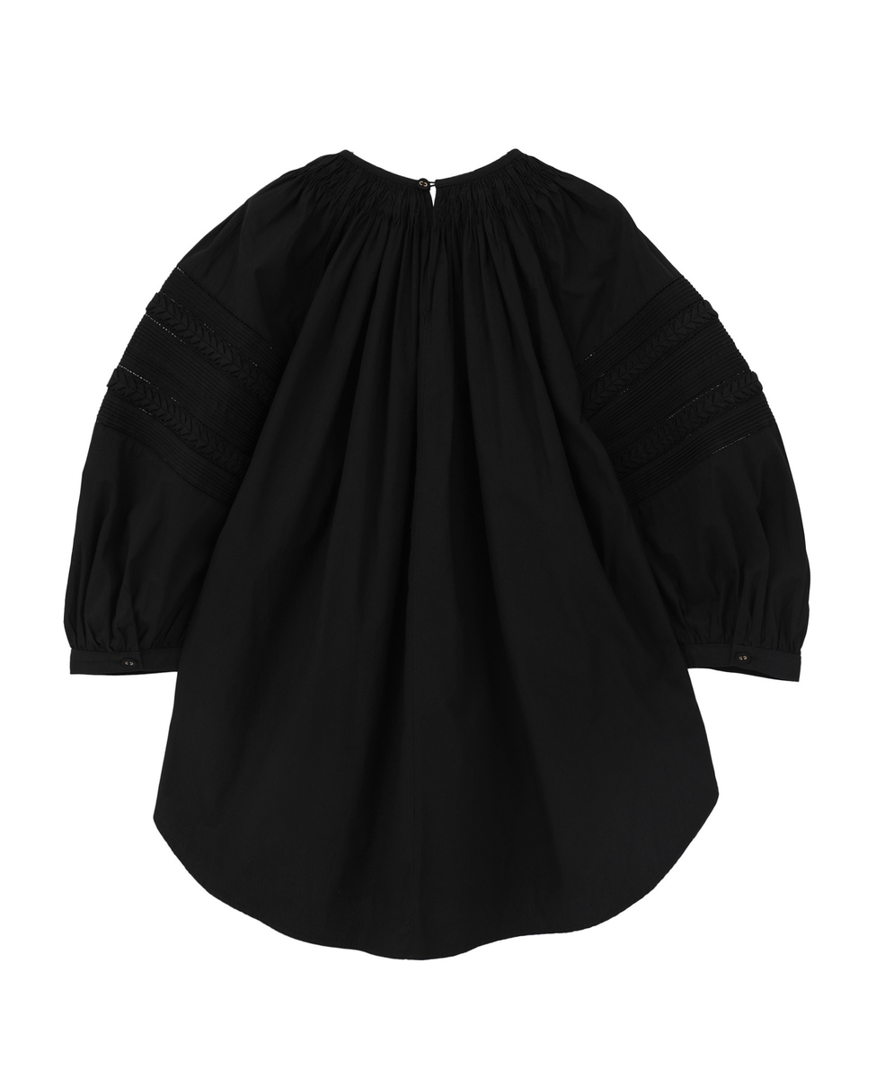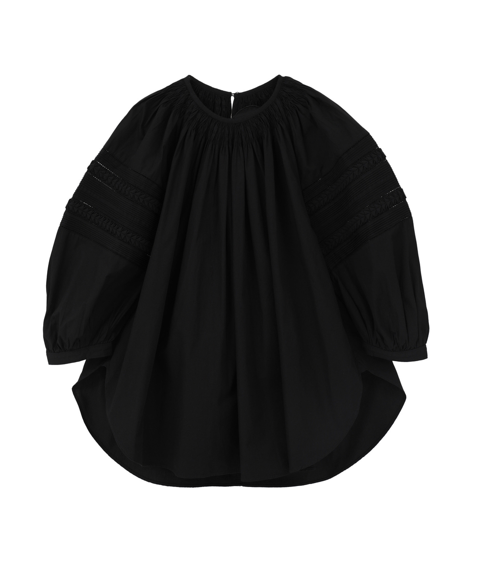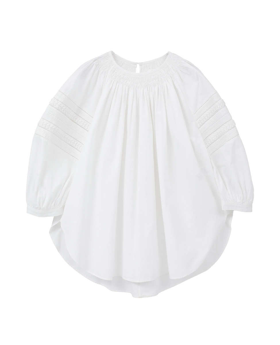 19世紀初め頃の低速編機で作られたリバーレースを使ったフェミニンな服のコレクション。世界に150台しかない昔ながらの編機のうち、12台を所有するインドのレース製作所とのコラボで生まれた日本のブランド。繊細で味のあるレースを生かすため、使われるコットンや麻の生地の風合いも優しく、まるでビンテージように見えるのが特徴です。