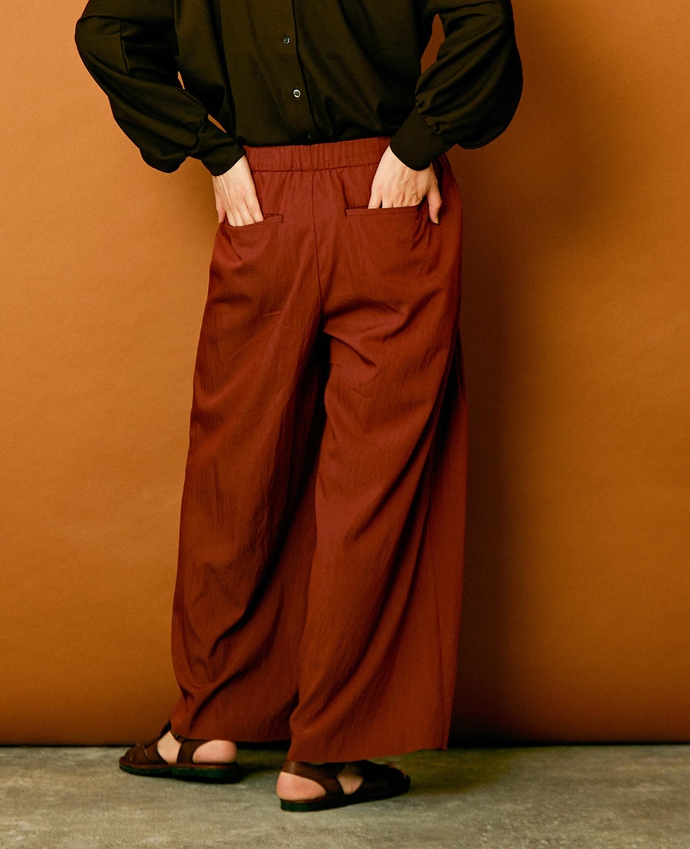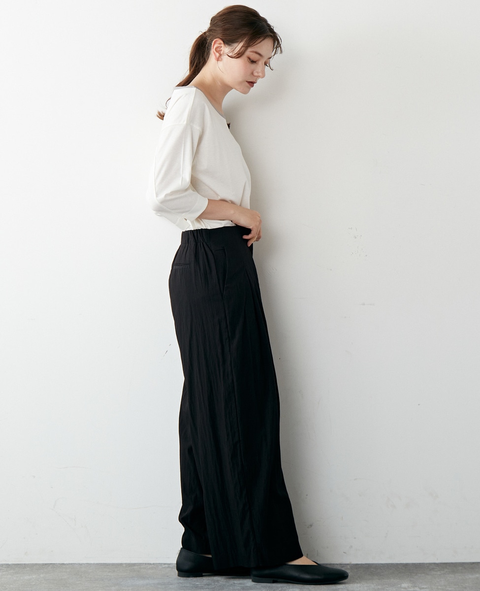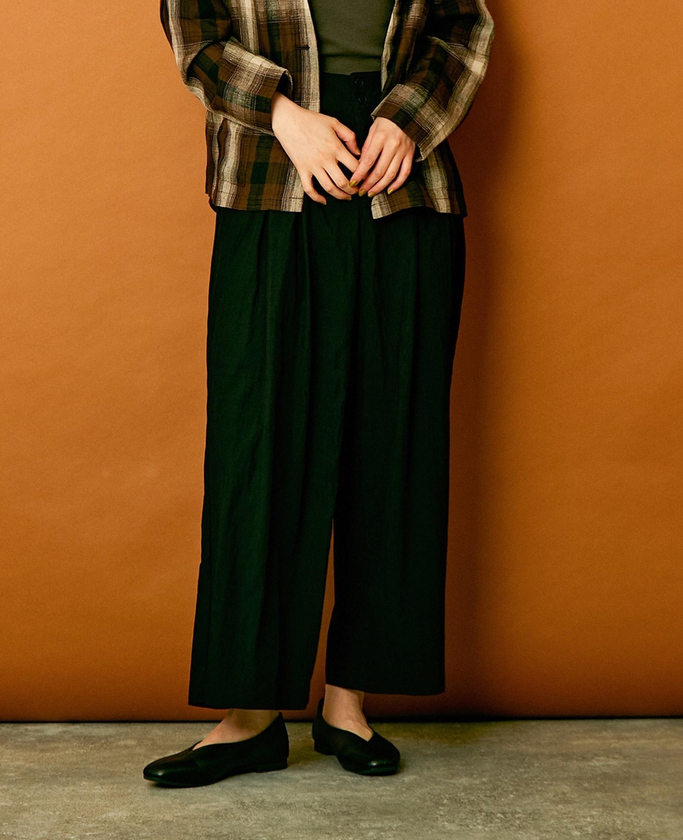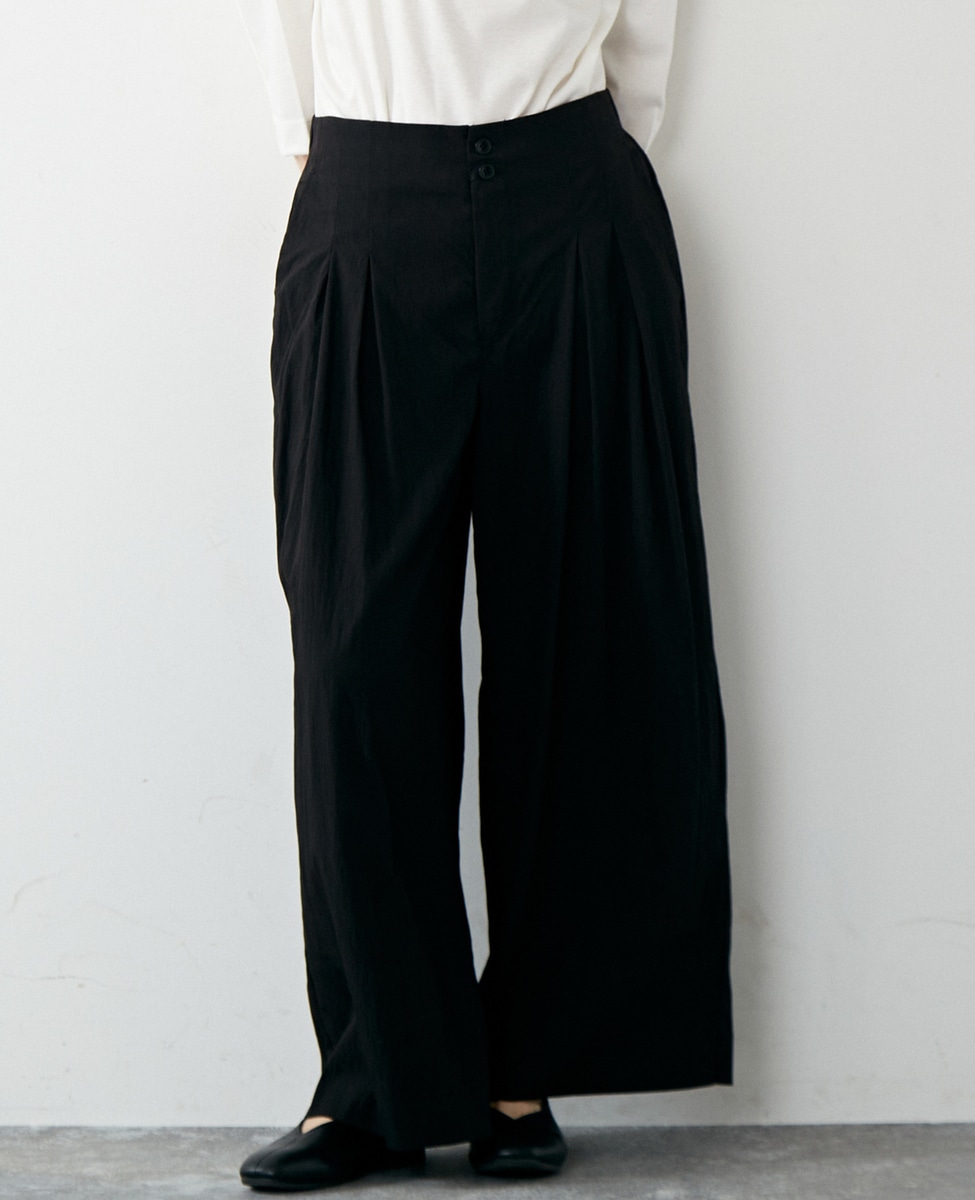 【リラクシーなシルエットのコットンレーヨンタックワイドパンツ】