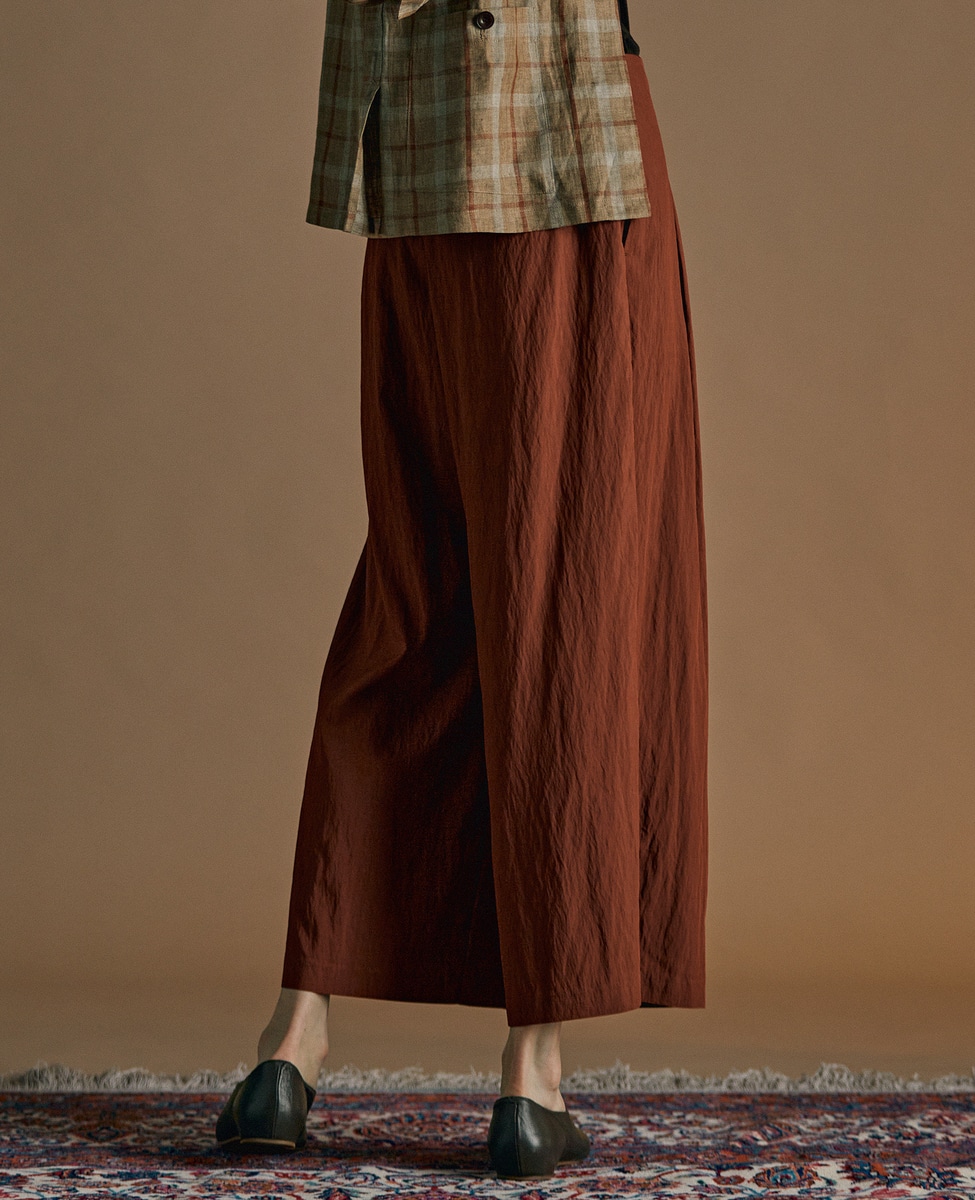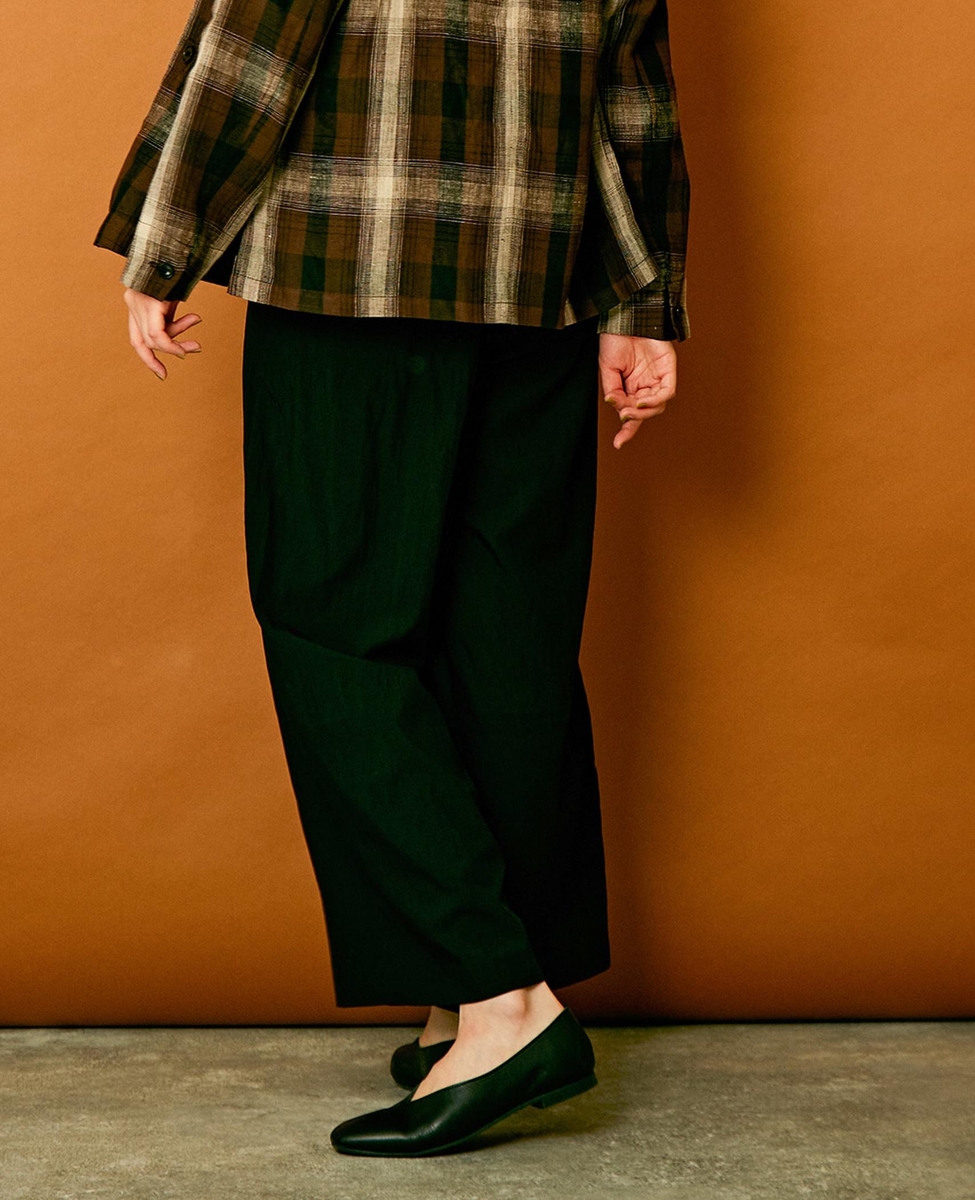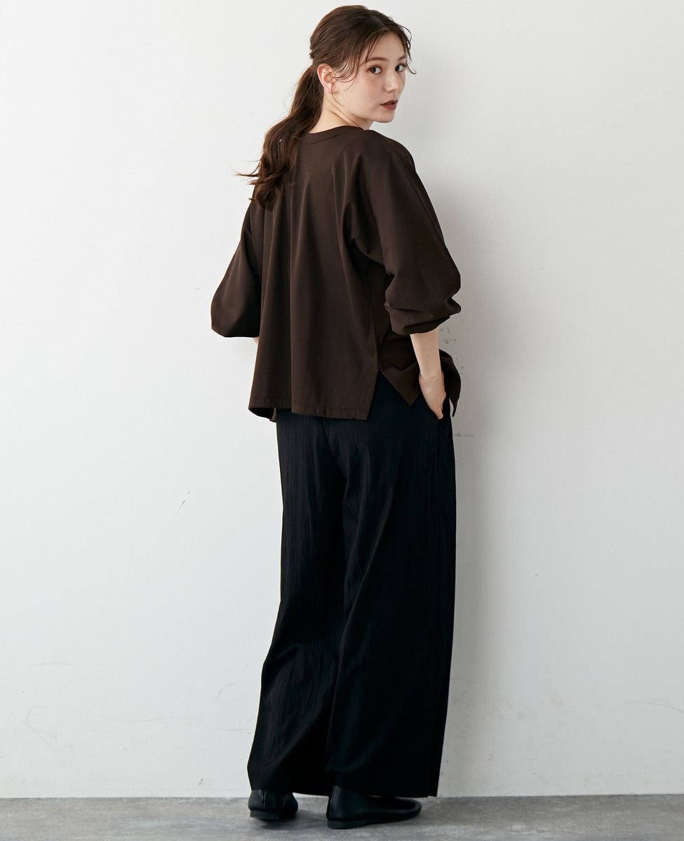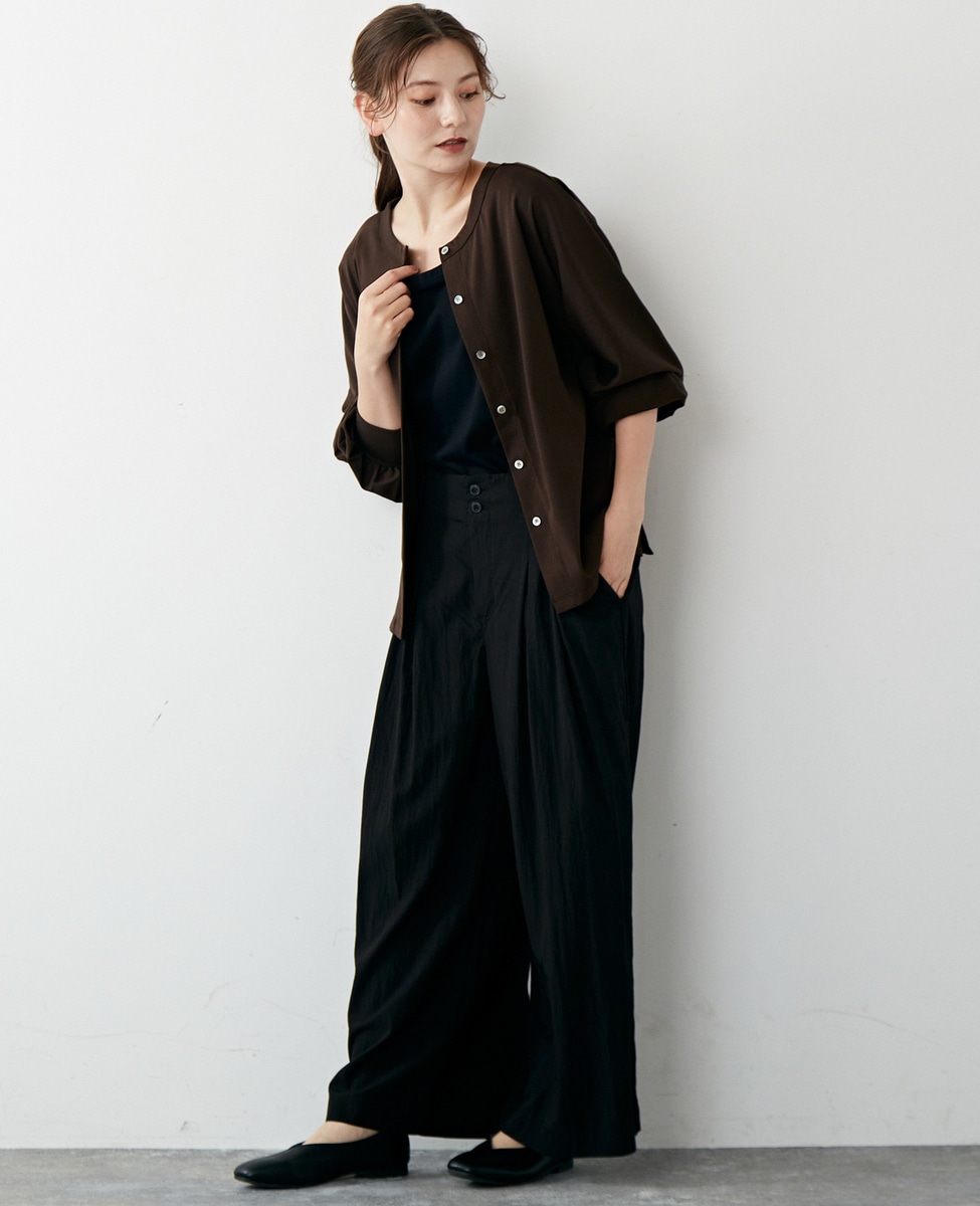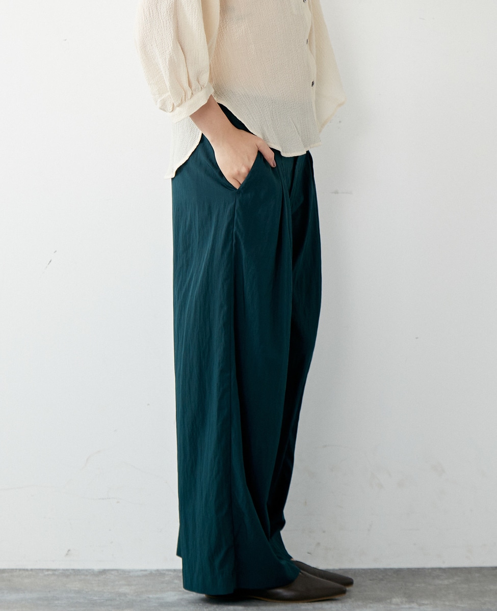 【リラクシーなシルエットのコットンレーヨンタックワイドパンツ】