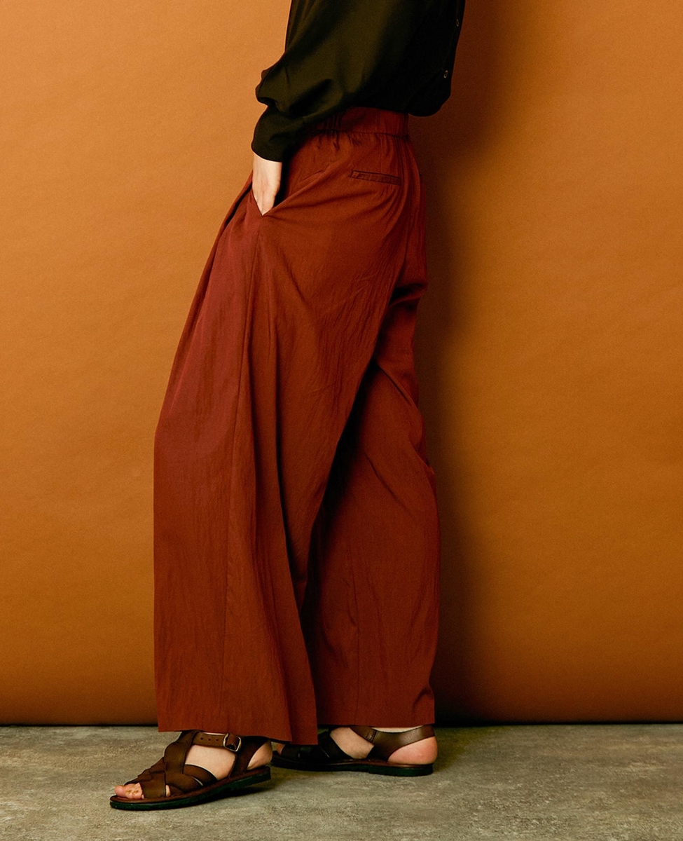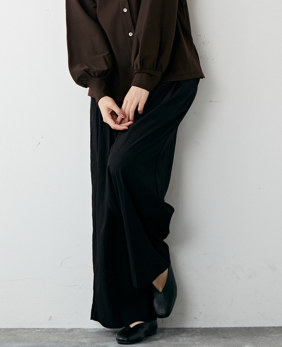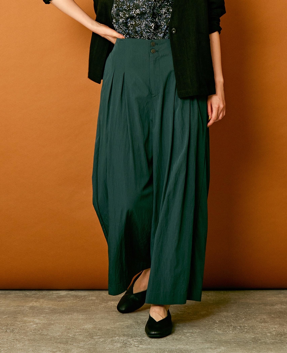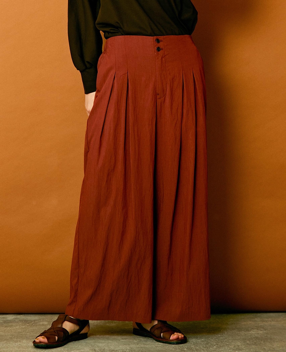 【リラクシーなシルエットのコットンレーヨンタックワイドパンツ】