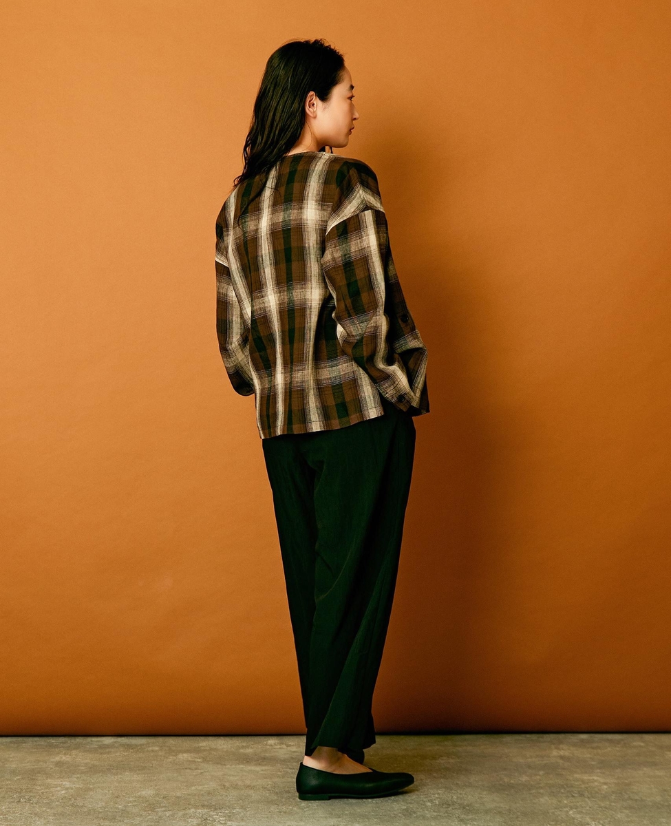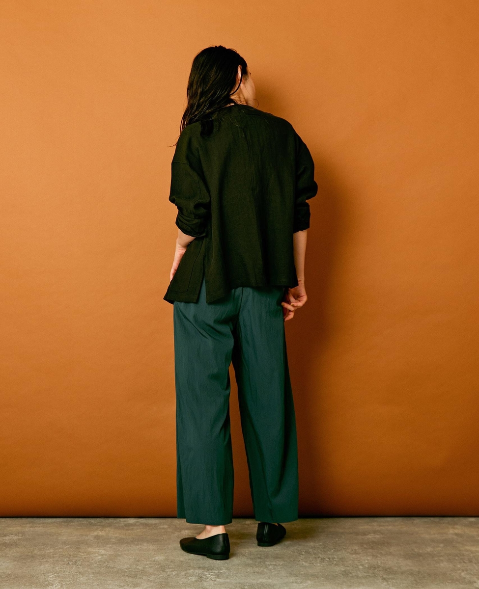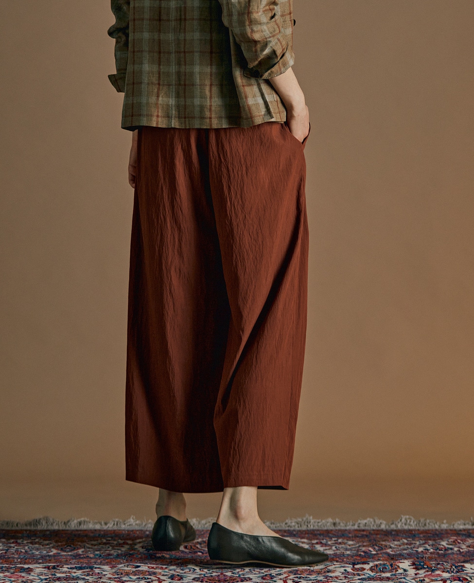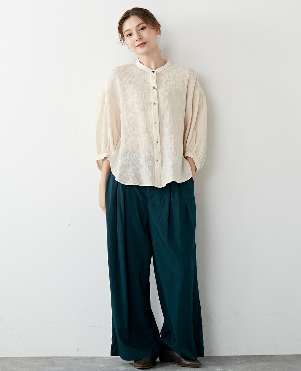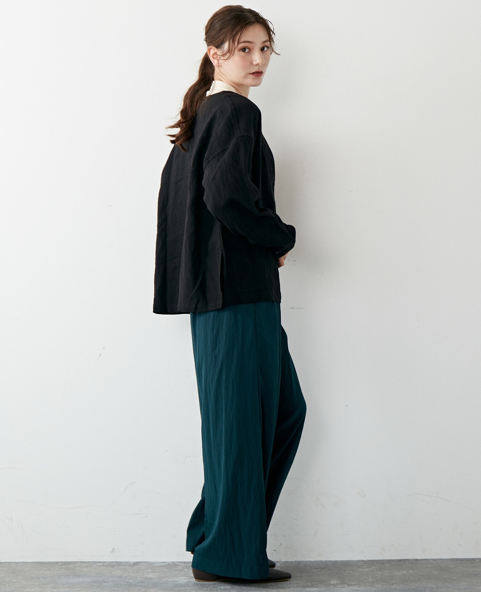 【リラクシーなシルエットのコットンレーヨンタックワイドパンツ】