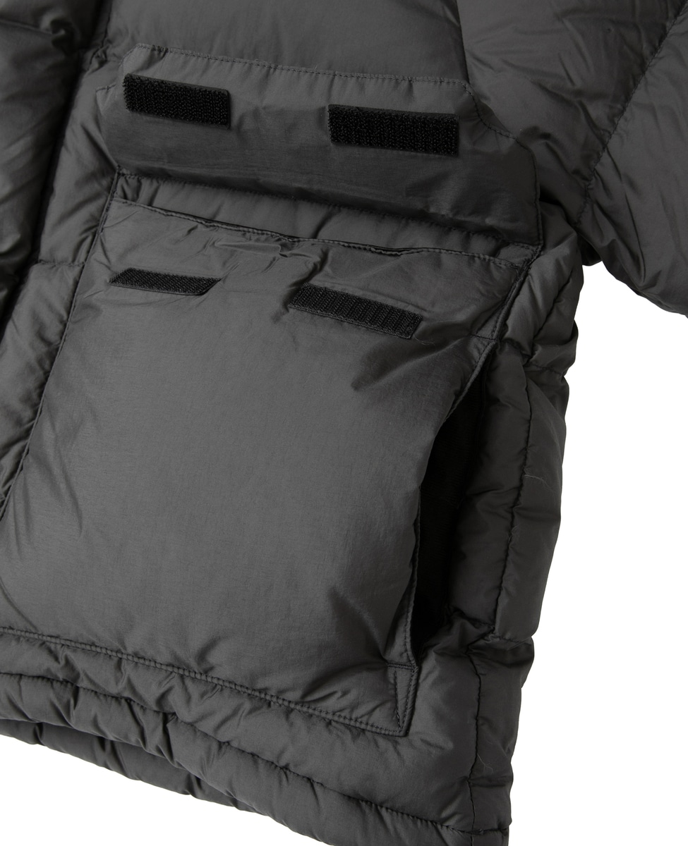 マットなナイロン素材にダウンを使用したジャケットパーカー。