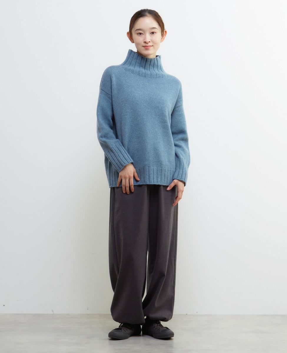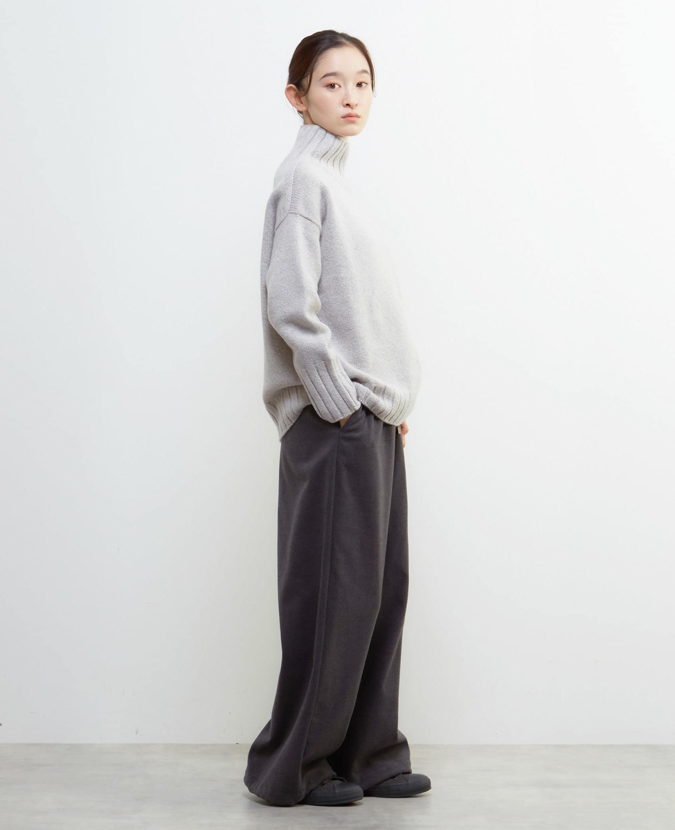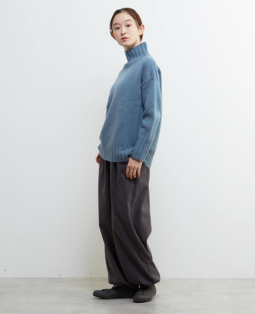 ラムズウールを使用したニット。ゆったりとしたサイズ感で、旬な雰囲気で着こなせます。