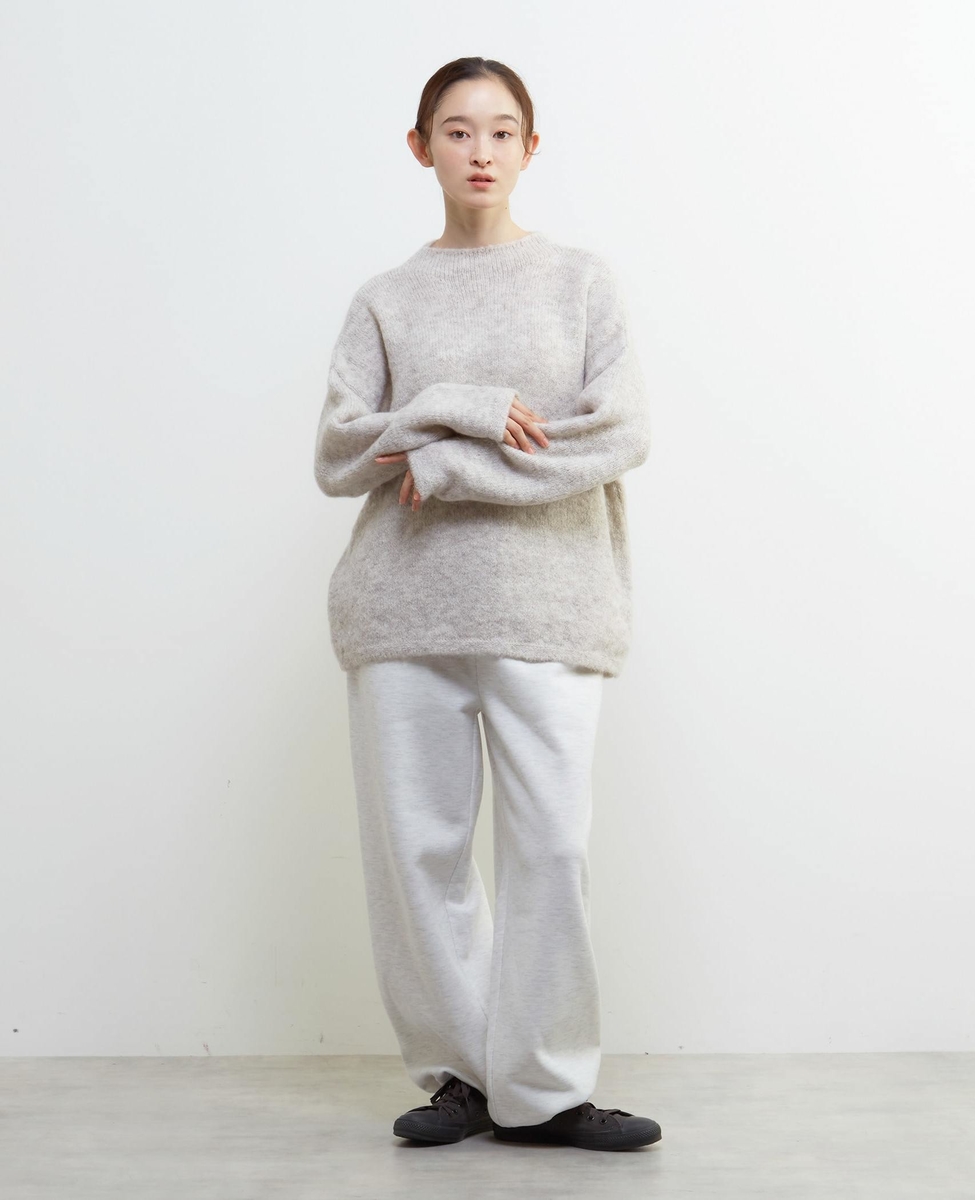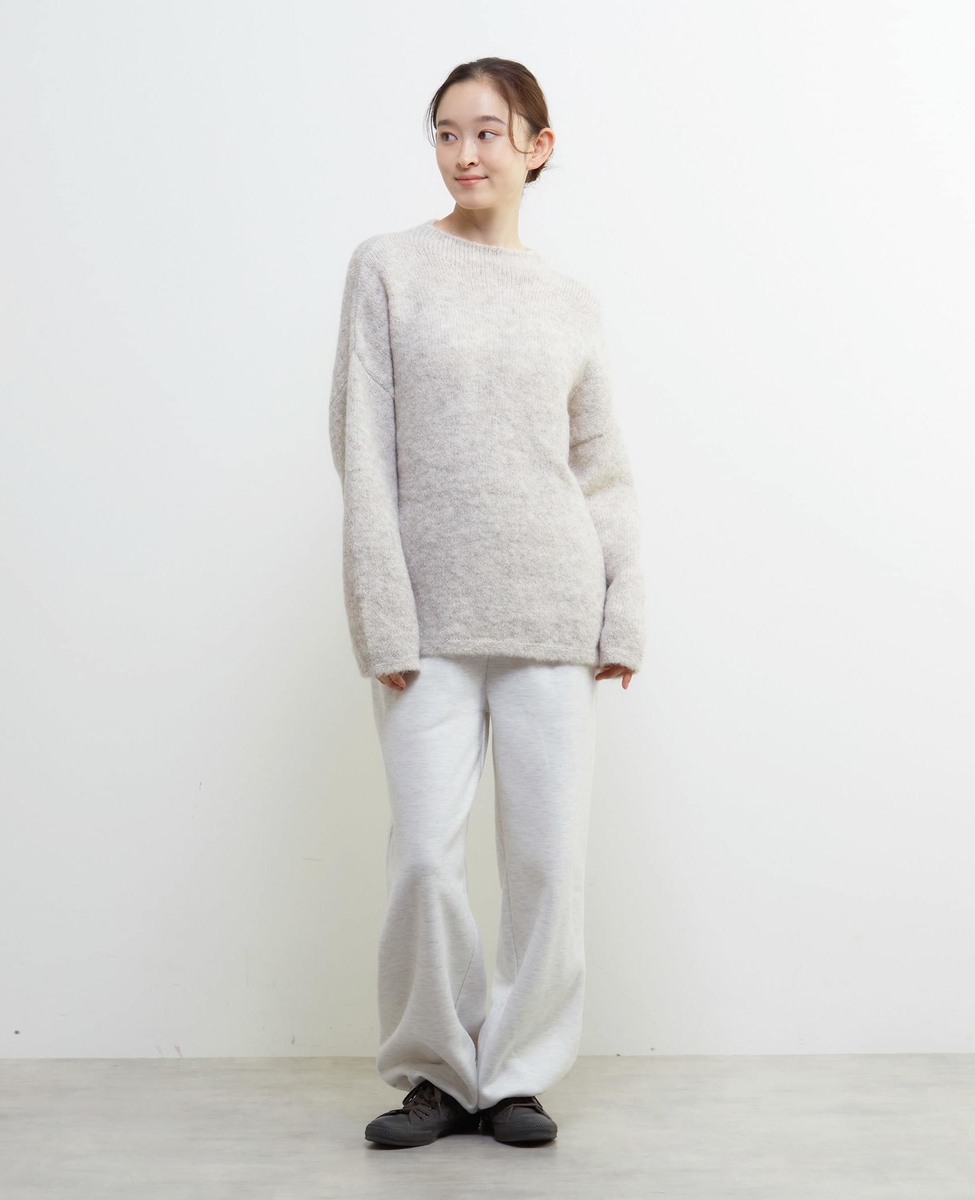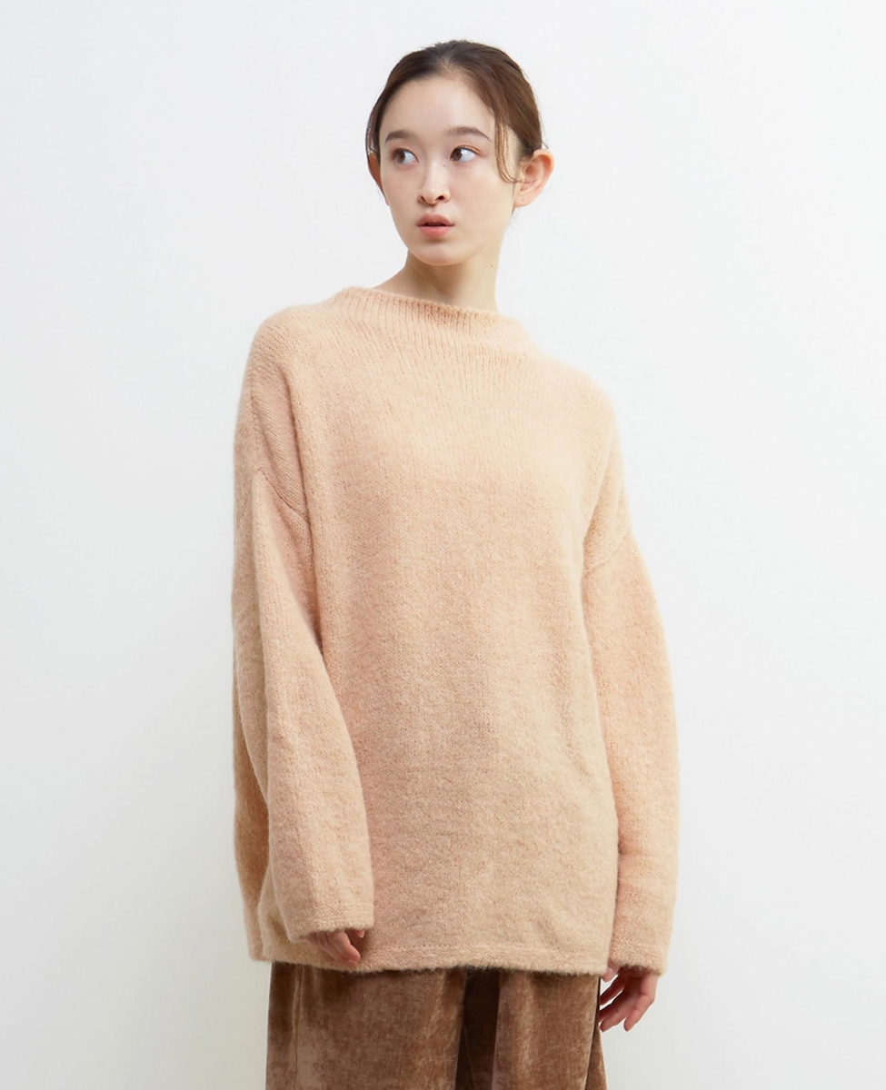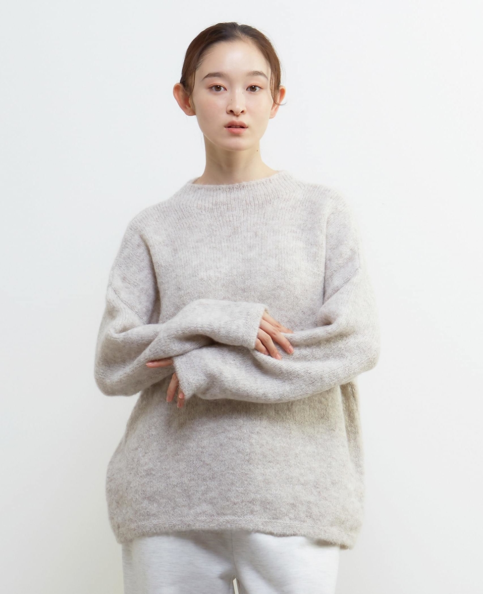 ふんわり柔らかなローゲージ編みのモヘア混ニットプルオーバー。