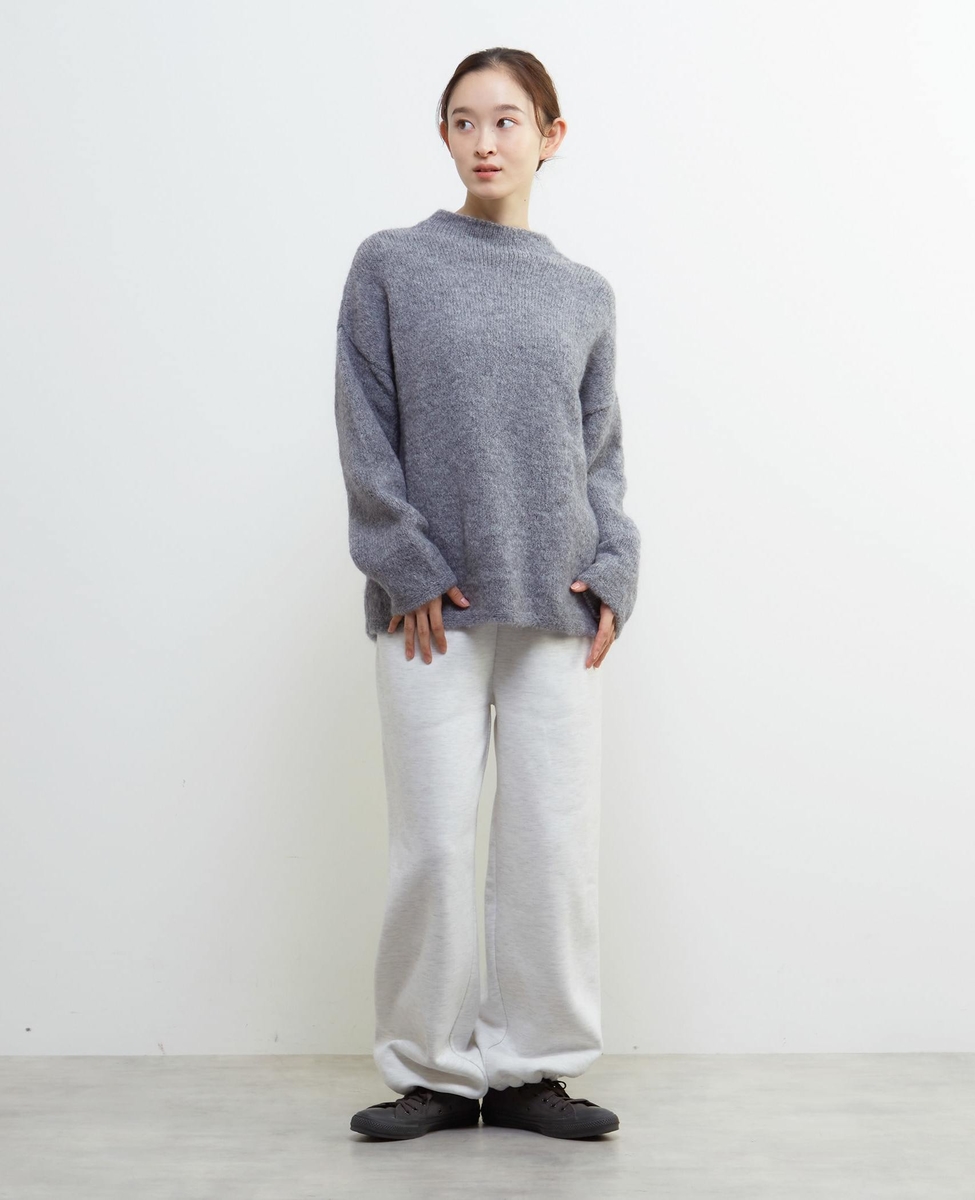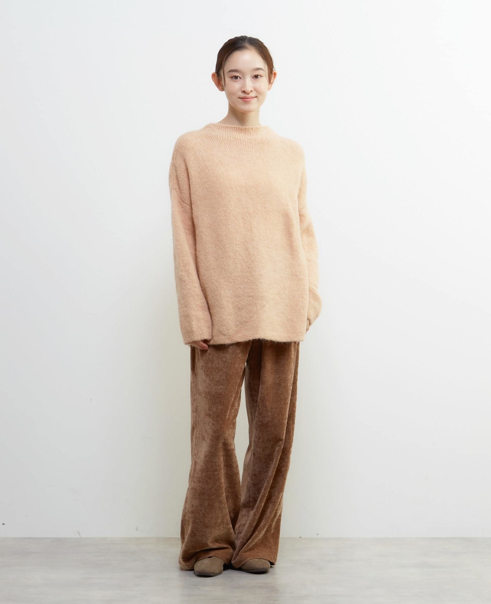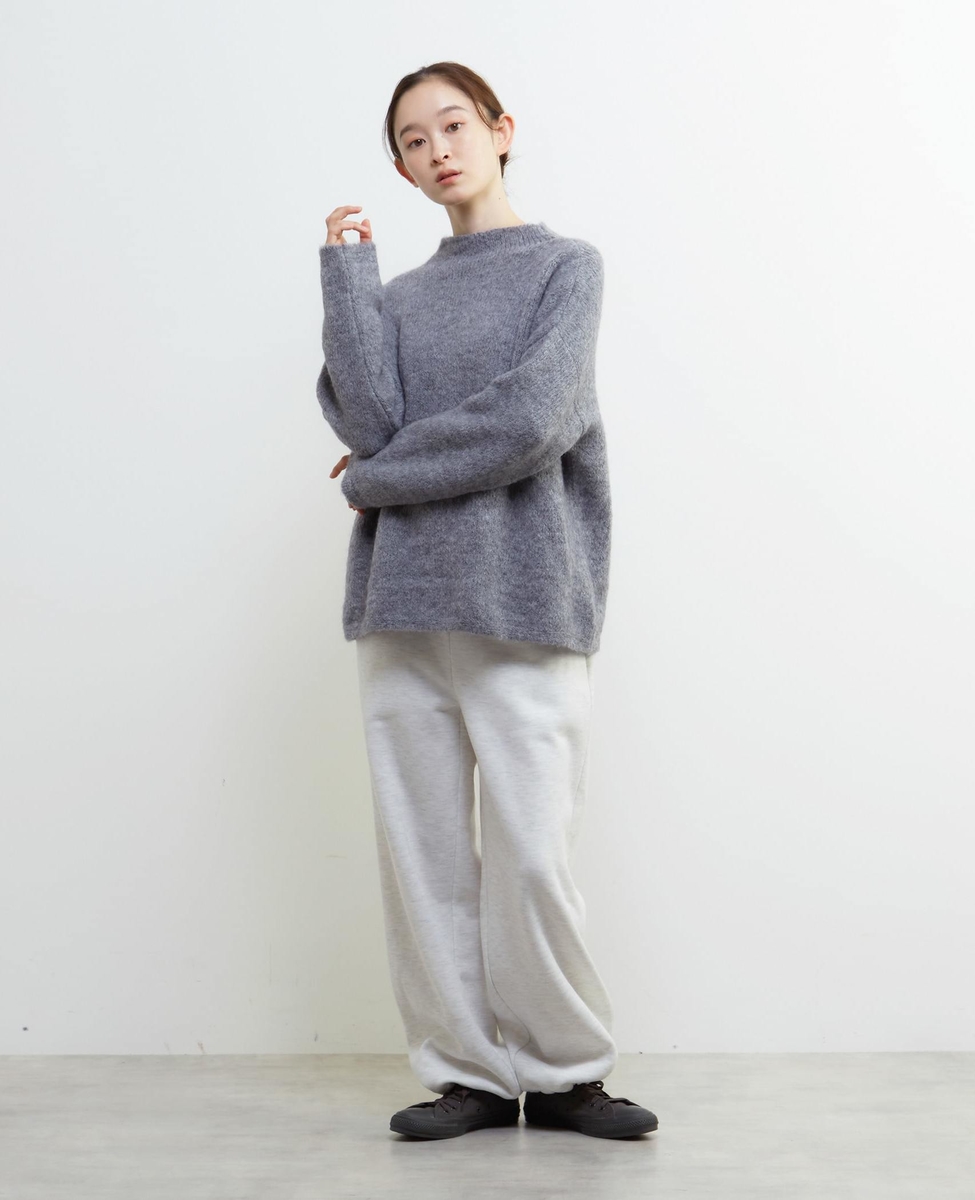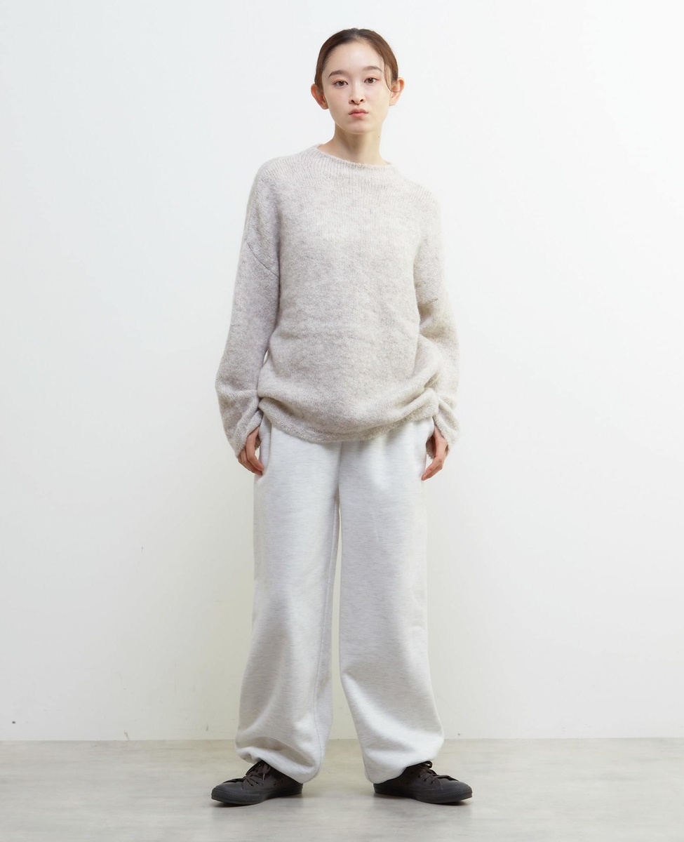 ふんわり柔らかなローゲージ編みのモヘア混ニットプルオーバー。