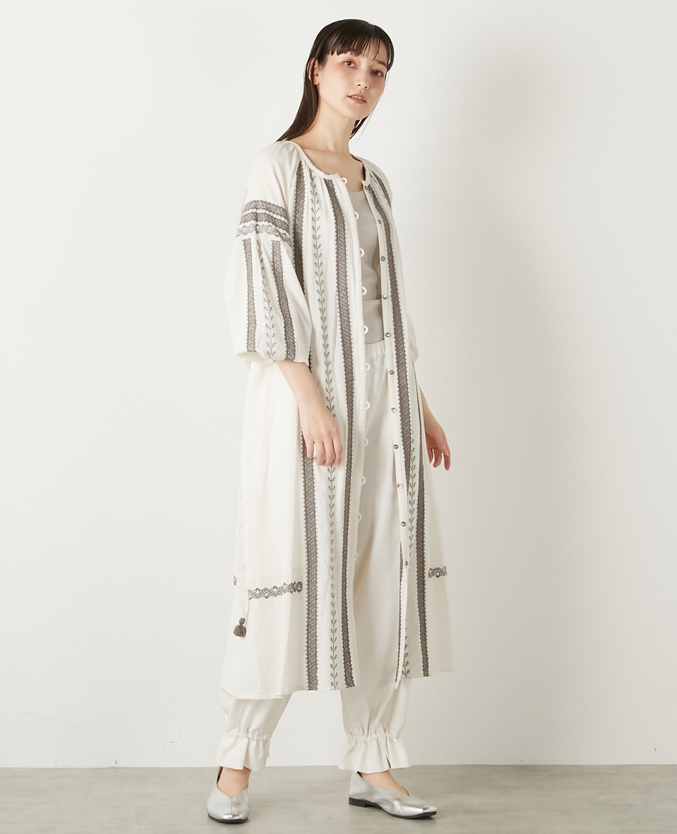【LOURMARIN】コットンリネン刺しゅうワンピース