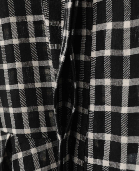 コットン100%の先染めチェック素材。肌触りの柔らかいナチュラルな風合いながらちょっと辛めな配色が特徴。