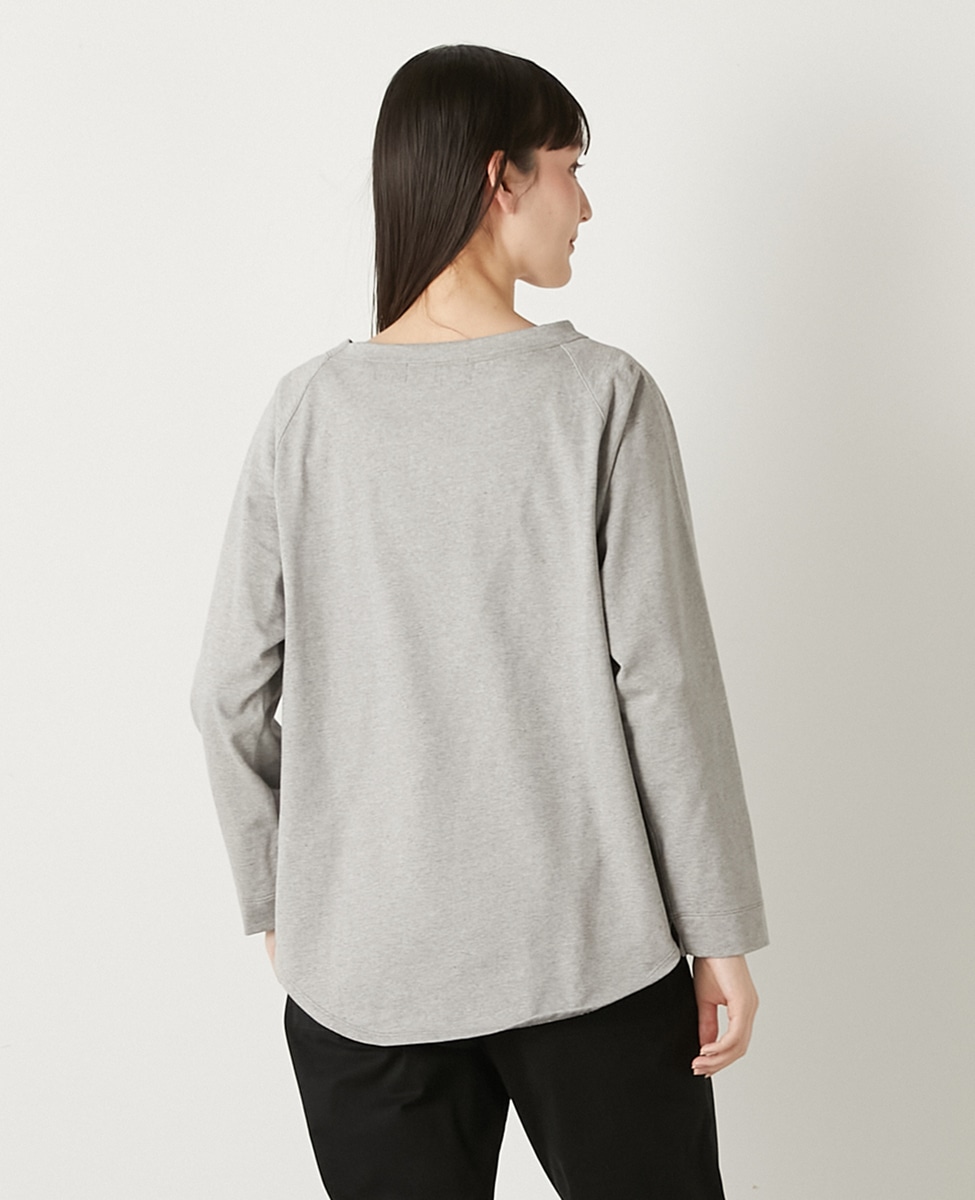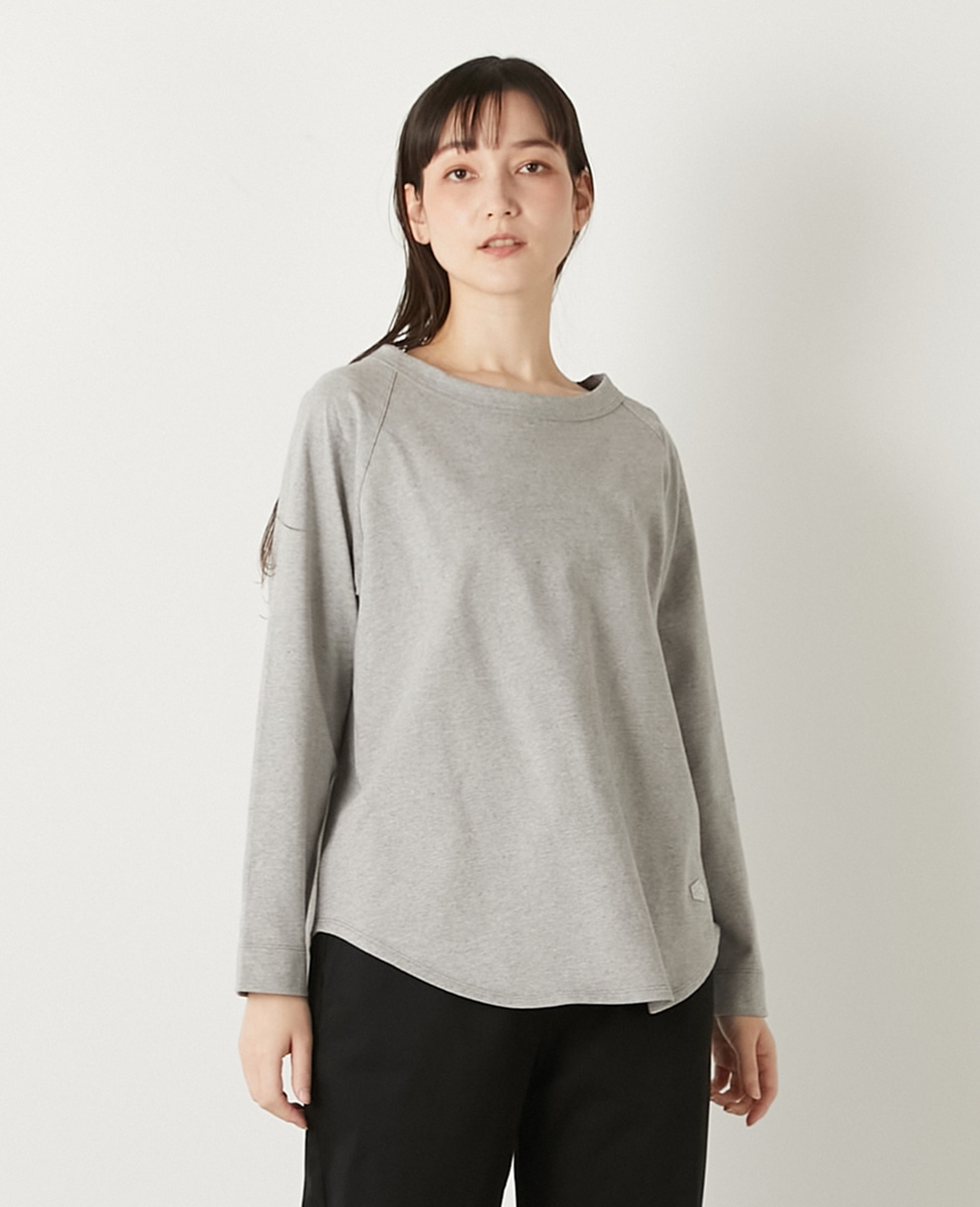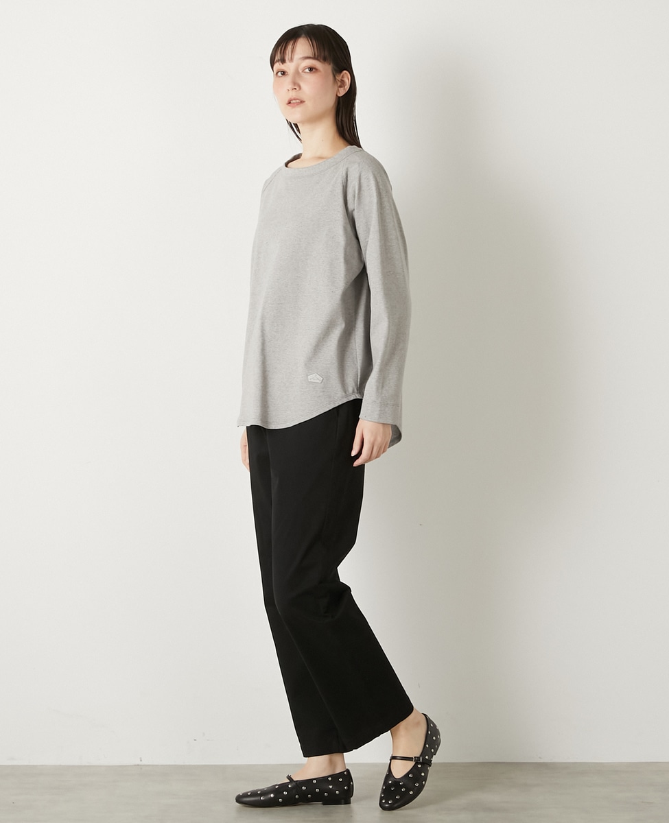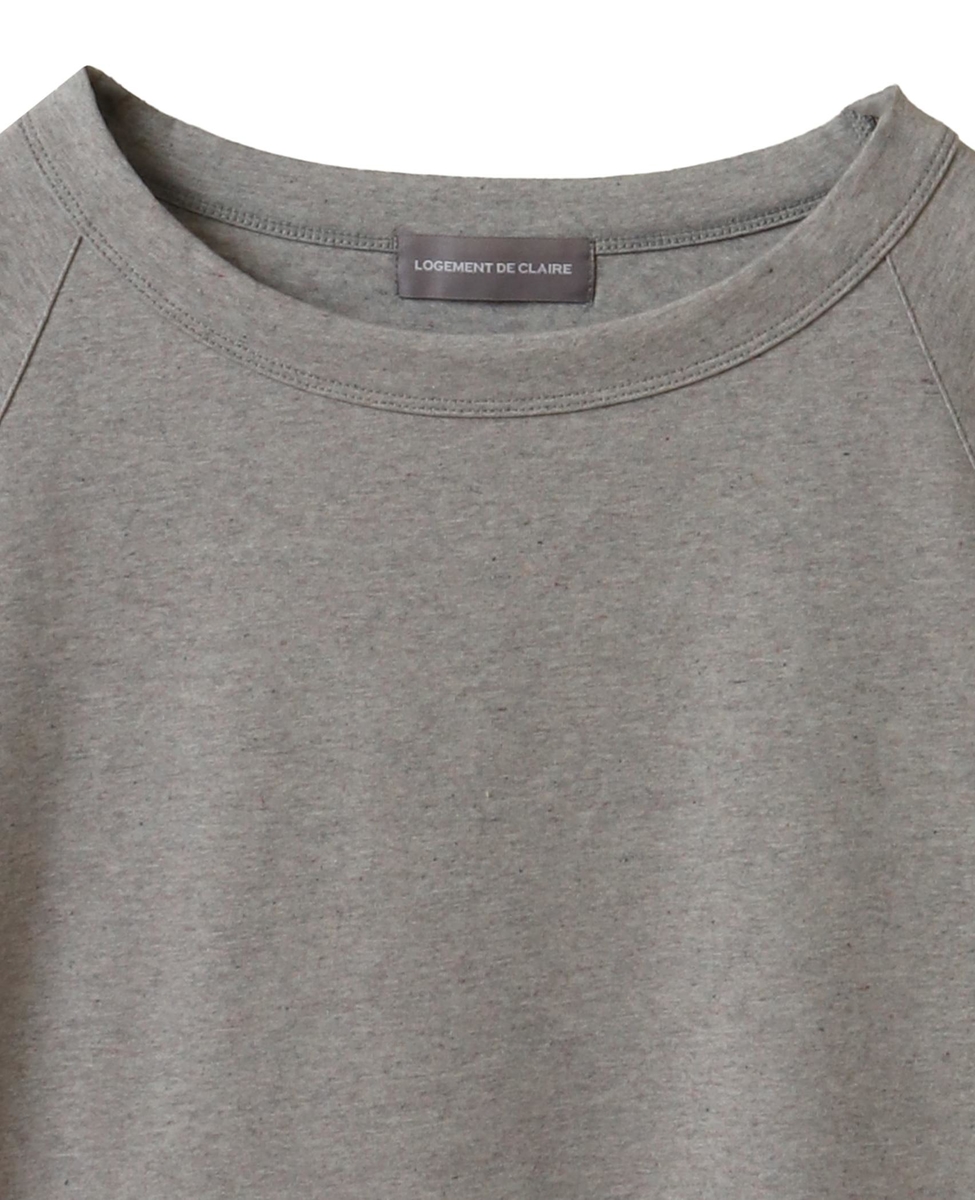 シンプルなボートネックのラグランスリーブのデザイン。生地が持つ独特な深みにマッチして大人なカットソーに仕上がっています。デイリーにお使い頂けます。左裾にLOGEMENT DE CLAIREのワッペンが付いています。