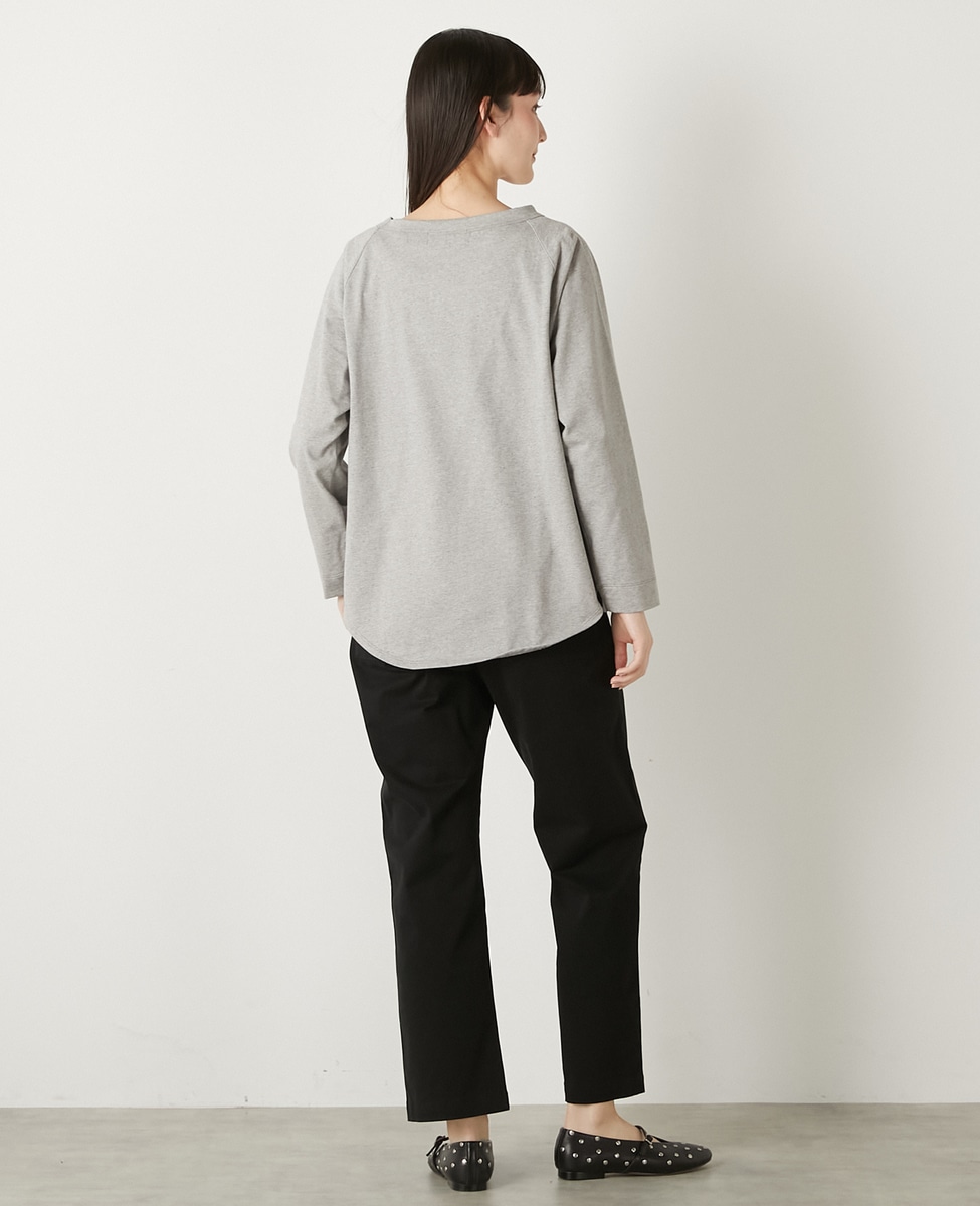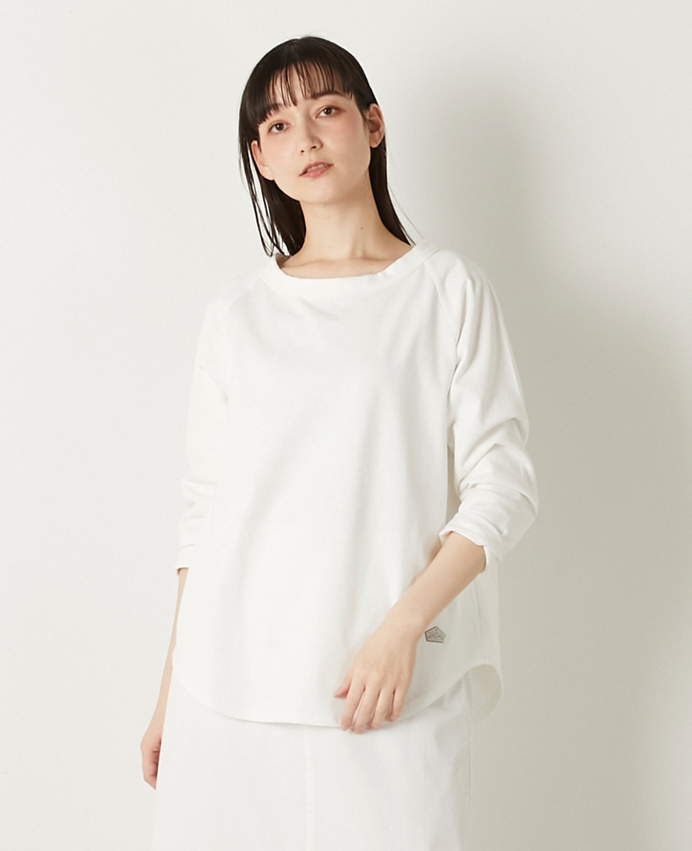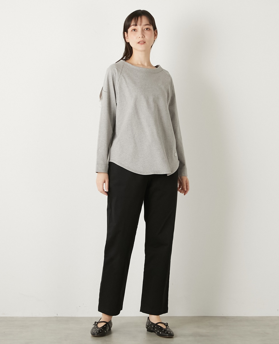 シンプルなボートネックのラグランスリーブのデザイン。生地が持つ独特な深みにマッチして大人なカットソーに仕上がっています。デイリーにお使い頂けます。左裾にLOGEMENT DE CLAIREのワッペンが付いています。