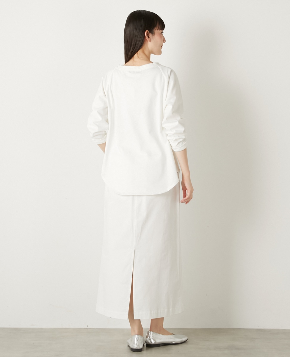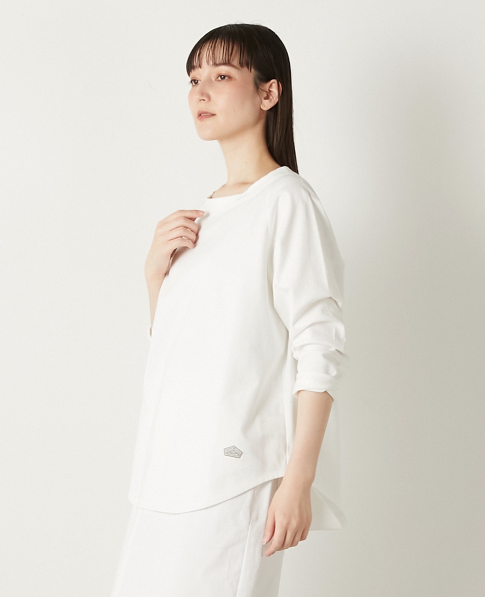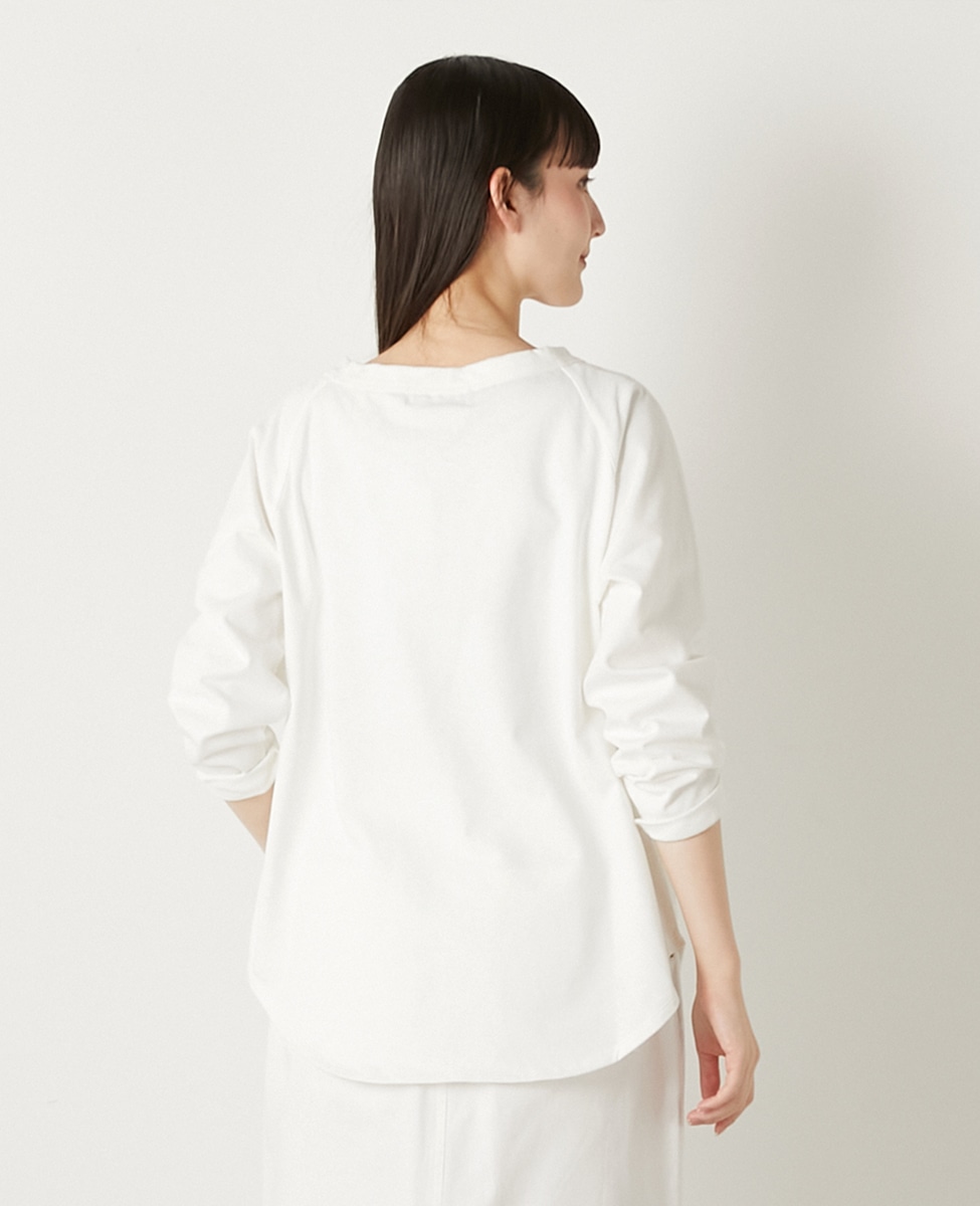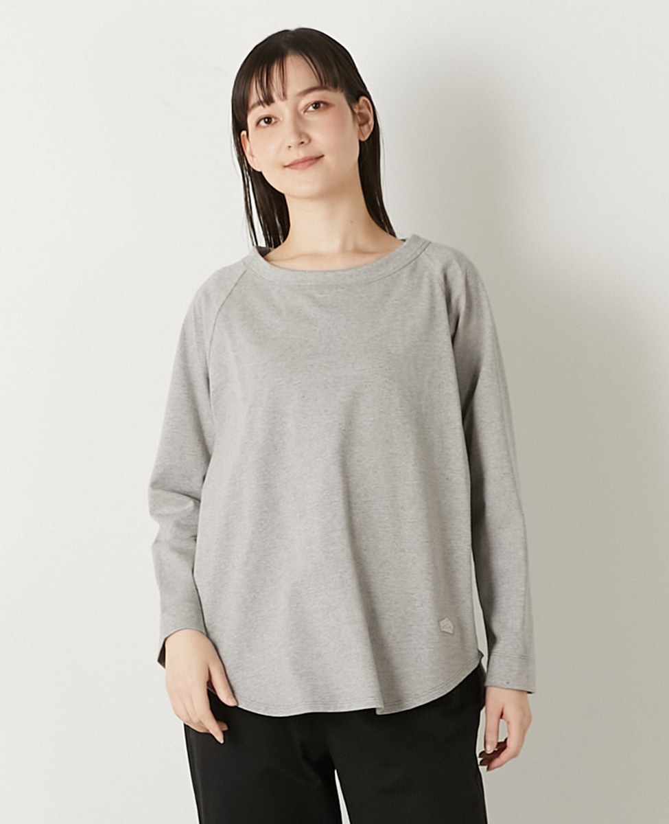 シンプルなボートネックのラグランスリーブのデザイン。生地が持つ独特な深みにマッチして大人なカットソーに仕上がっています。デイリーにお使い頂けます。左裾にLOGEMENT DE CLAIREのワッペンが付いています。