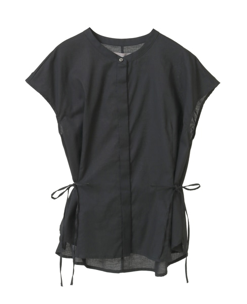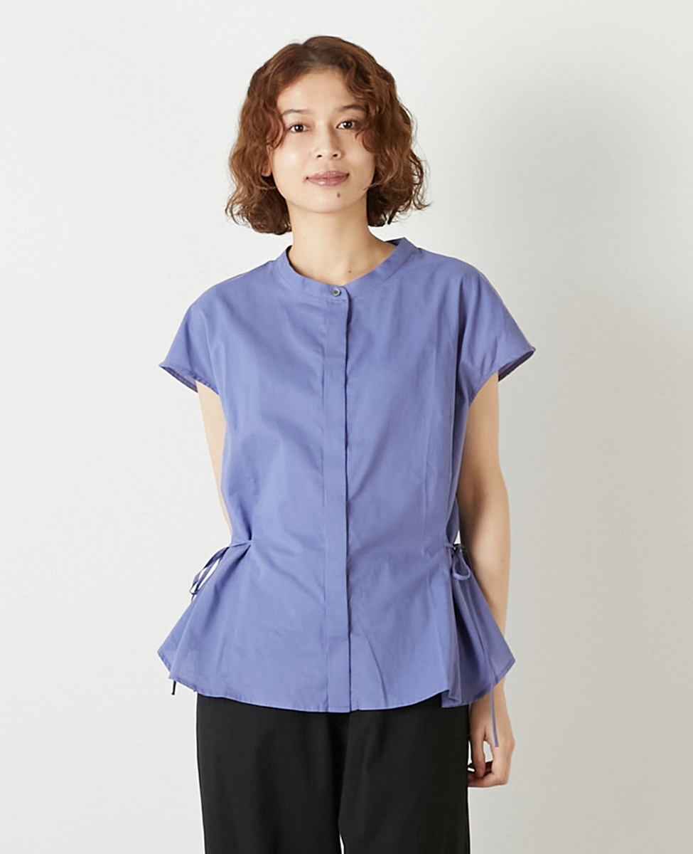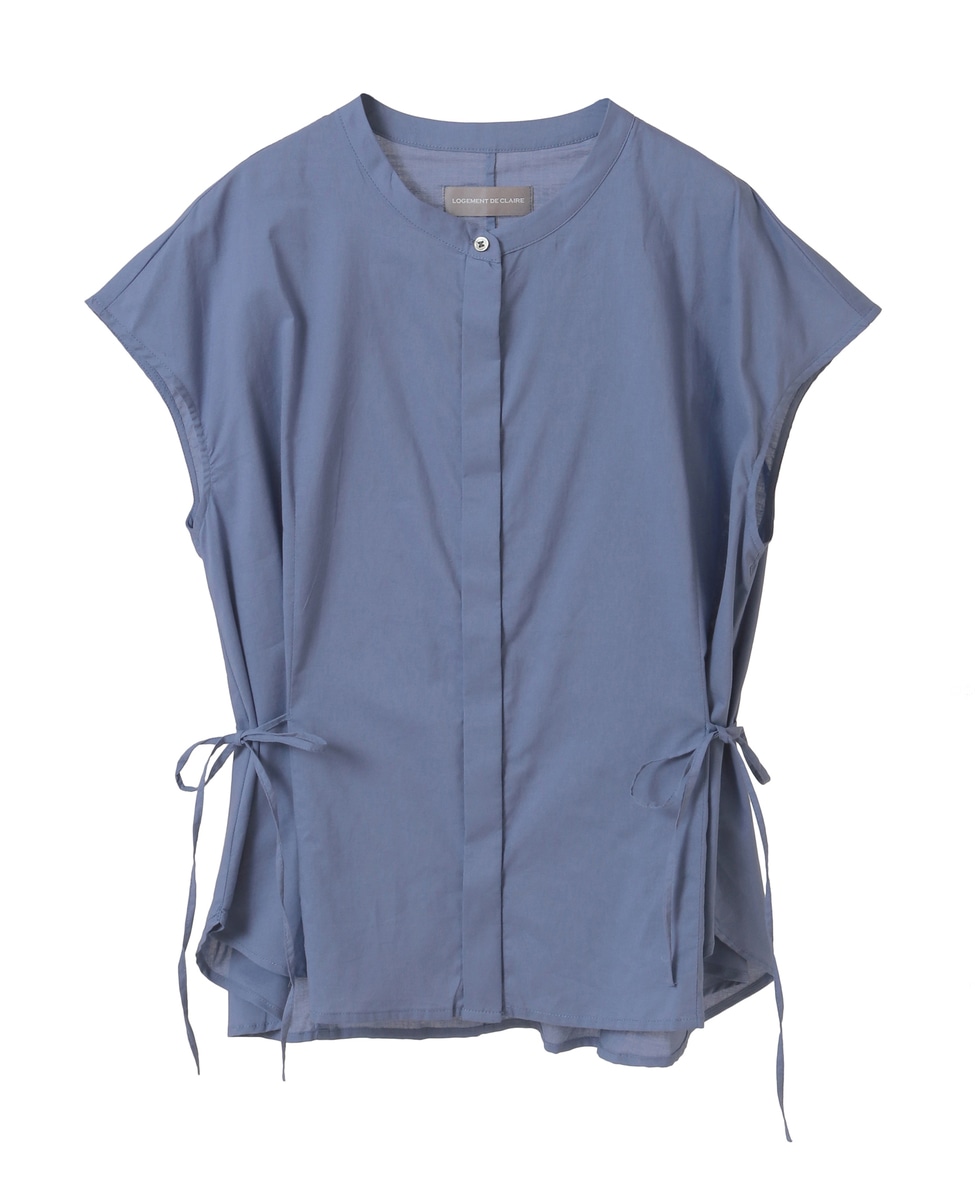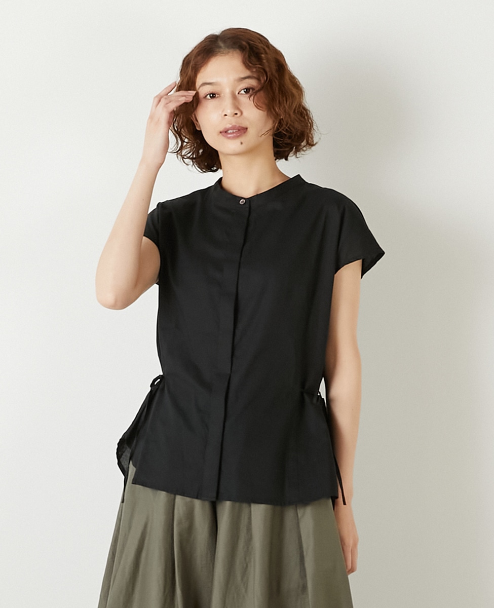サイドにリボンを施したフロント比翼のブラウス。