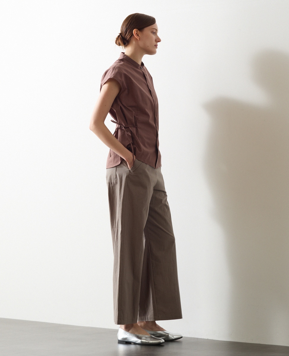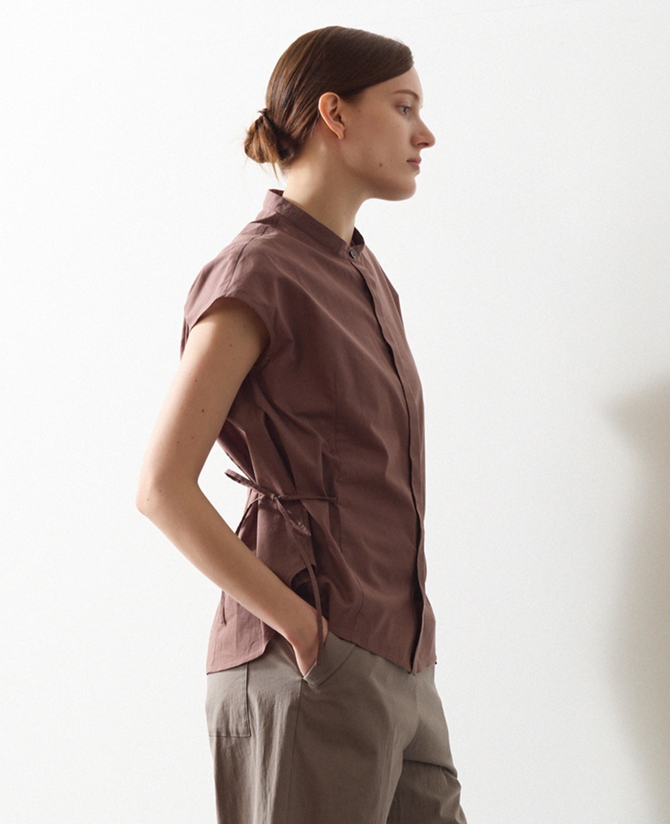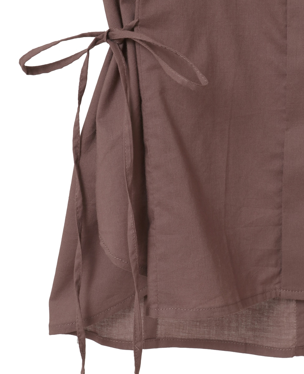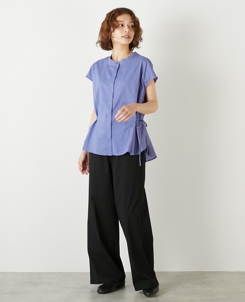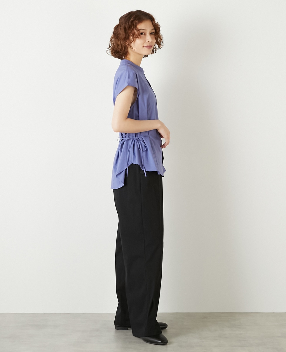サイドにリボンを施したフロント比翼のブラウス。