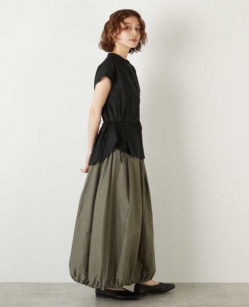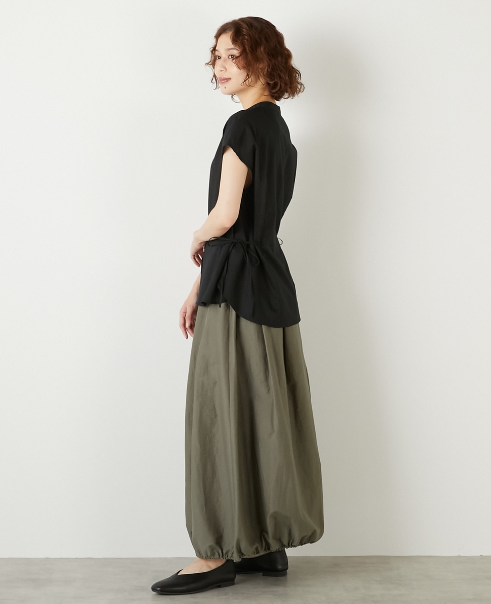 ギュッと絞ってウエストをマークしたスッキリシルエットまで