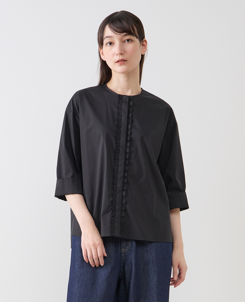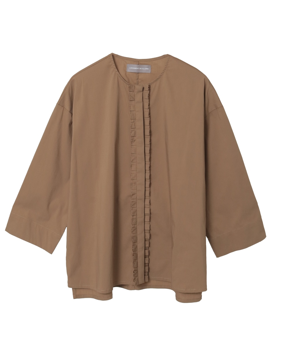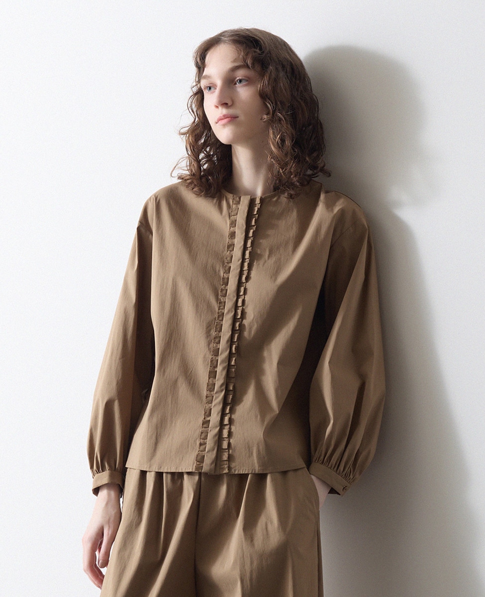 一枚で華やかな装いが完成するアイテムです。少し短めの丈感はボリュームのあるボトムスとも高相性。