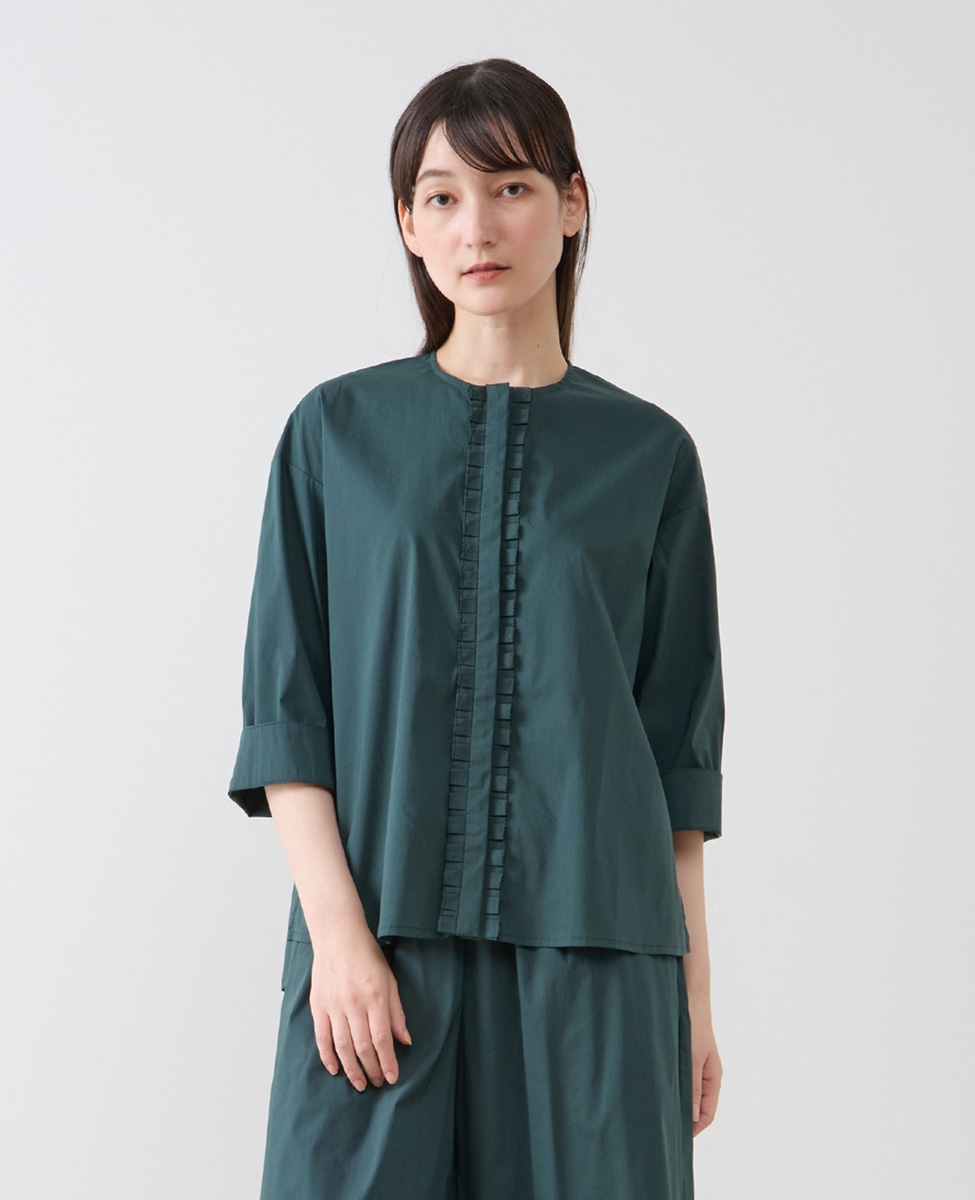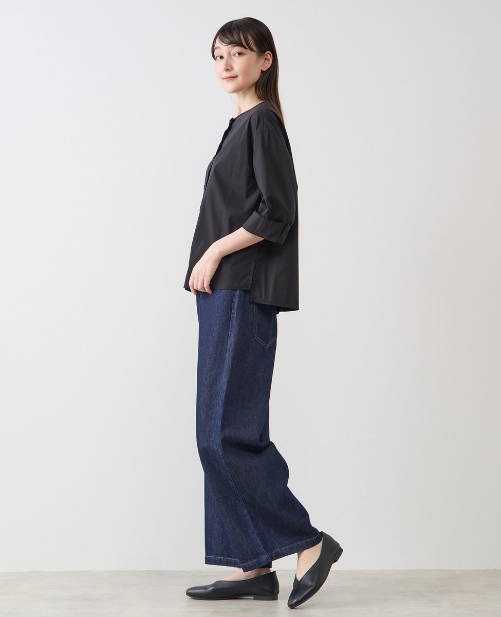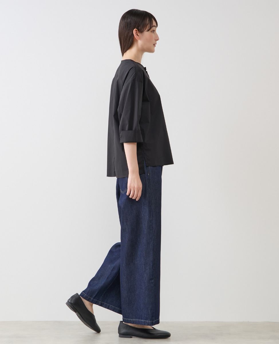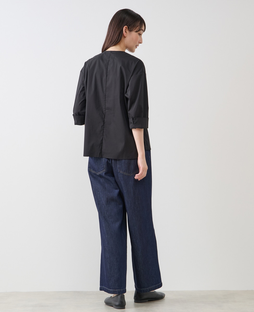 サラリとした肌触りのコットンナイロンストレッチ素材。高密度に織られているので適度なハリと軽さが特徴です。