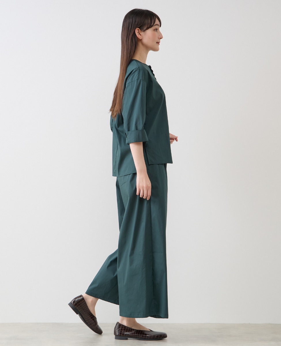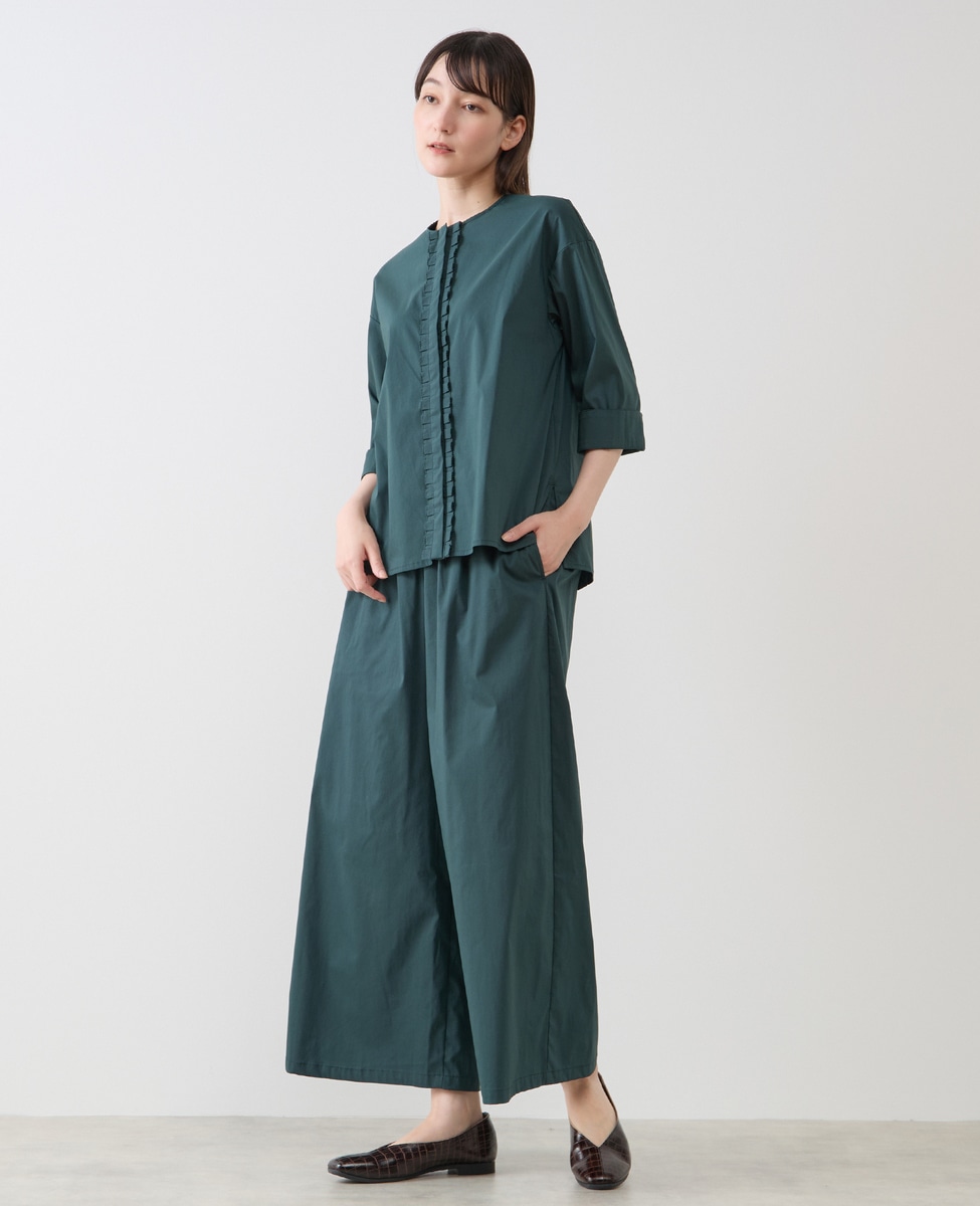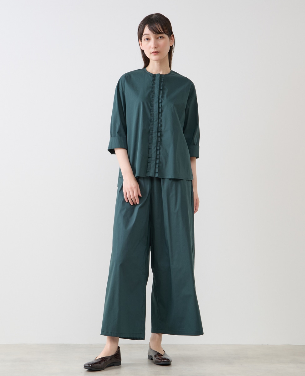 同素材でお作りしているタックワイドパンツとセットアップもおススメです。