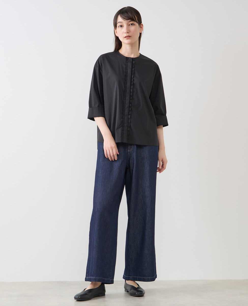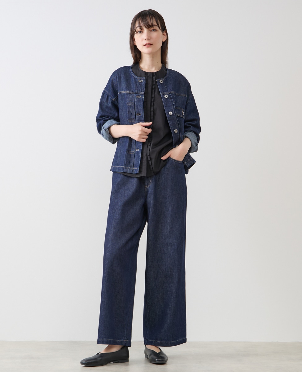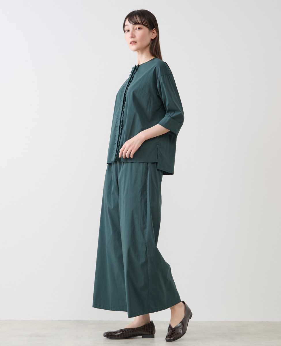 同素材でお作りしているタックワイドパンツとセットアップもおススメです。