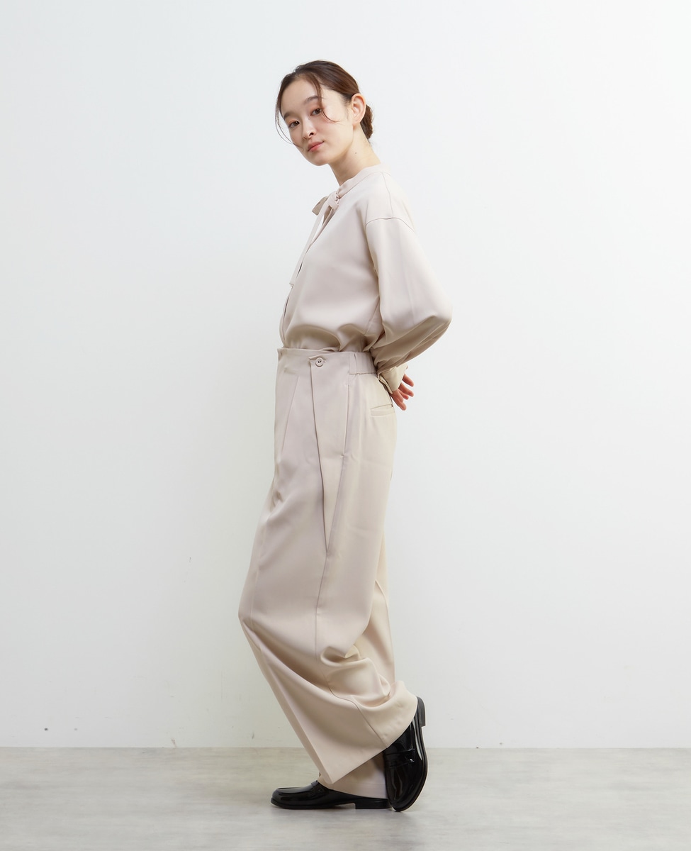 袖口タックとボウタイがほのかにかわいらしさを演出してくれるアイテムです。