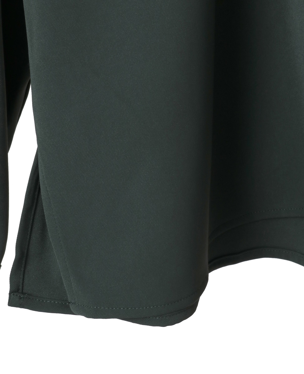 マットな光沢感としなやかな肌触りのポリエステル二重織素材。適度な厚みがあり一枚でもジャケットやカーディガンのインナーとしても使いやすい素材感です。