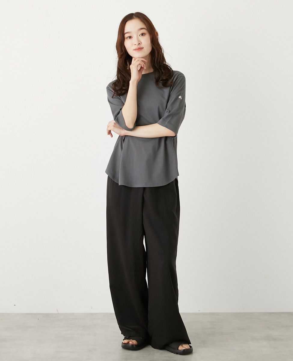 クルーネックラウンドヘムTシャツ