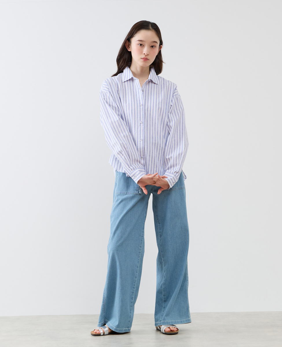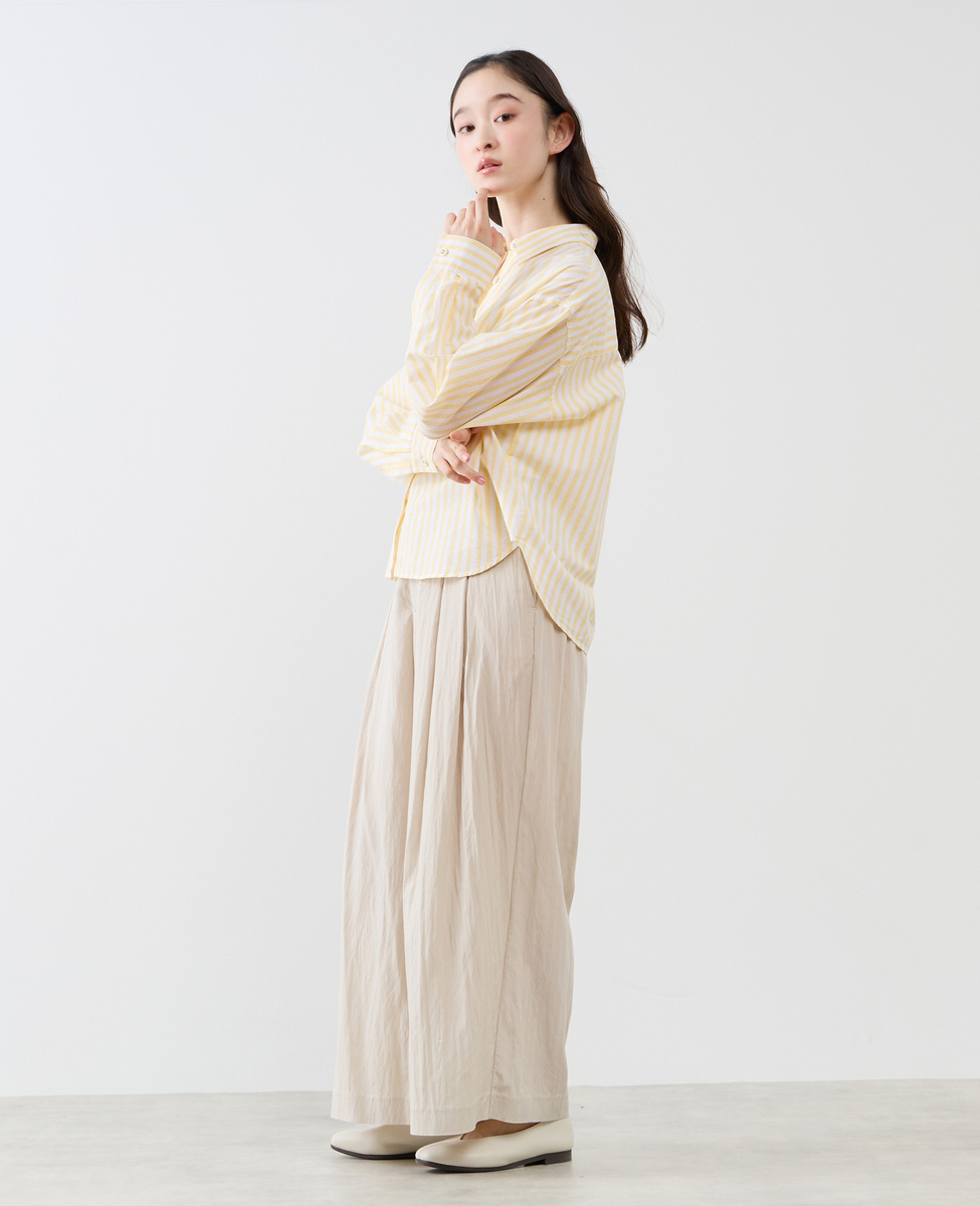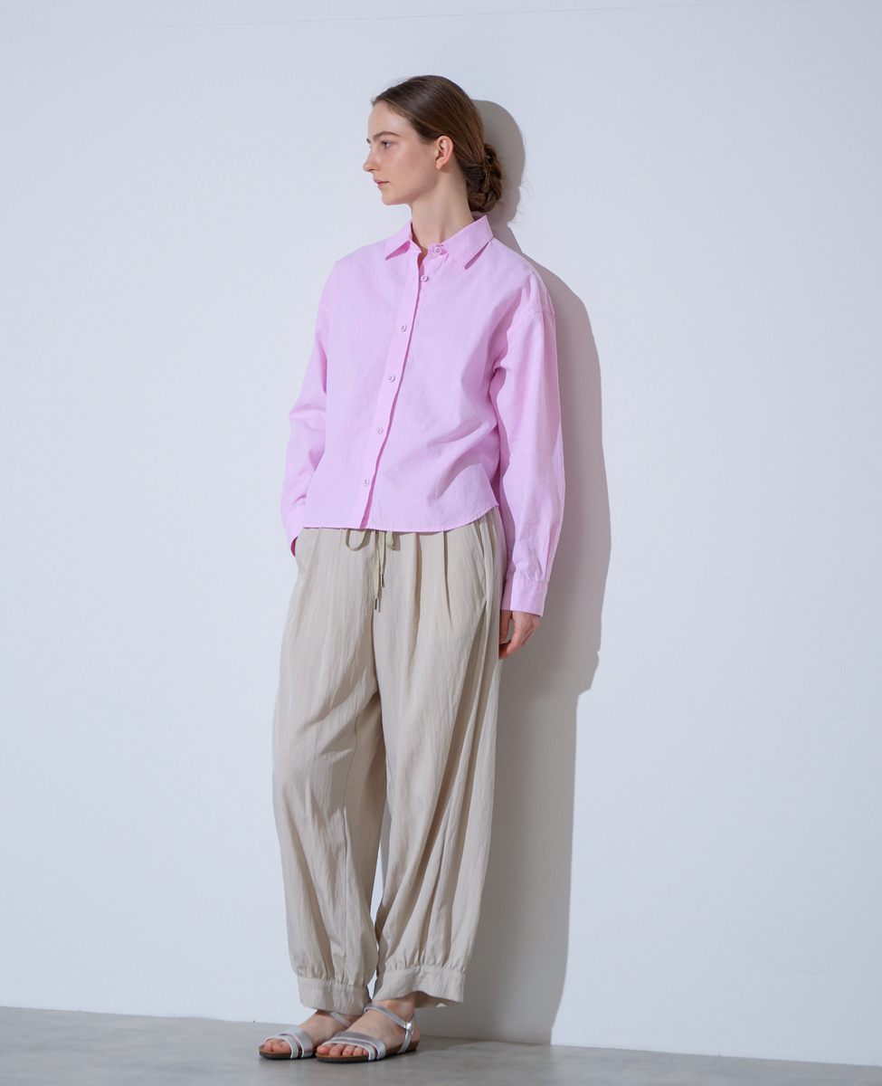 綿麻素材でお作りしたリラックス感のあるシルエットのレギュラーカラーシャツ。