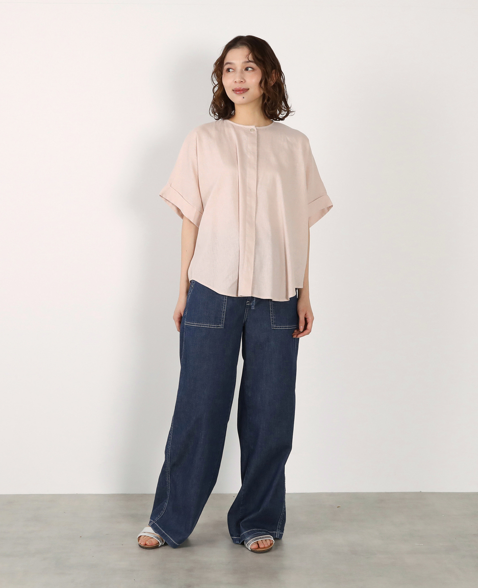 ライトウェイトで薄手の生地ですが張り感もあるストレッチ素材。