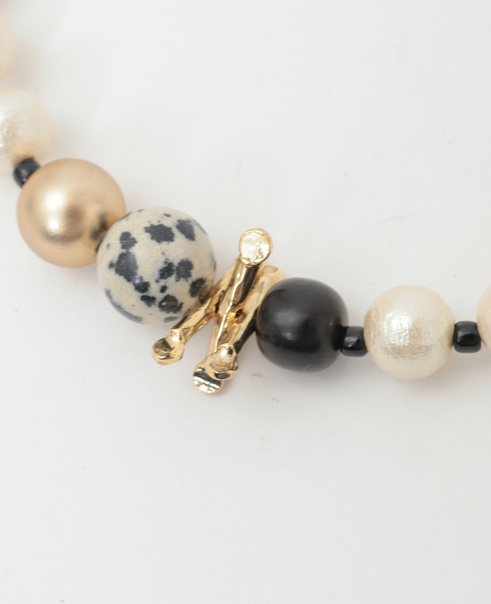 素材 コットンパール 真鍮玉 ホーン ダルメシアンジャスパー ガラスビーズ メタルパーツ:スズ合金 コード:ポリエステル80% ポリウレタン20%