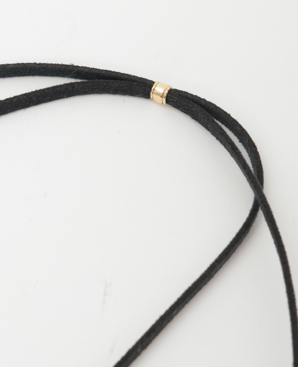 クラシックとモードを兼ね備えたチョーカー。キュッと首元にコンパクトに着けて黒のコードは前に垂らしてお洋服の一部のように。チョーカーに抵抗がある方でも、取り入れやすいデザインです。