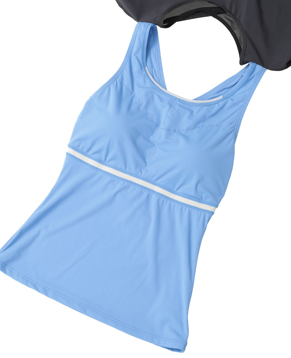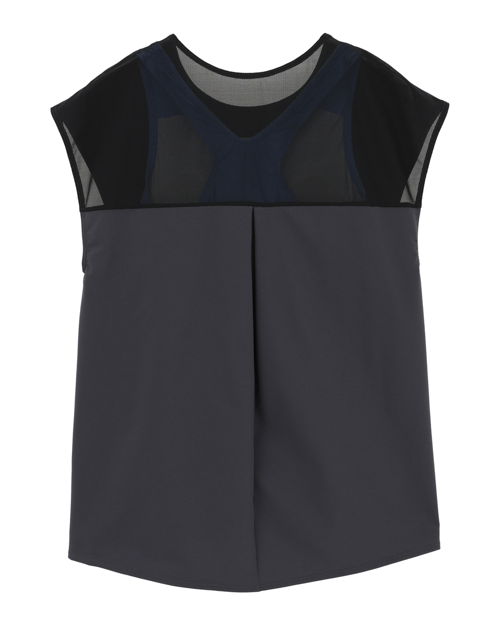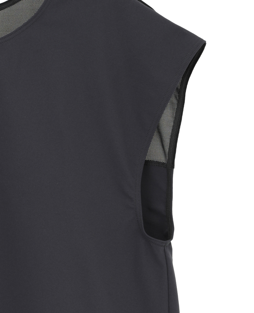 インナー背面は肩を動かしやすいYバックで、軽量&水抜けのよいメッシュ生地を重ねたデザインが、