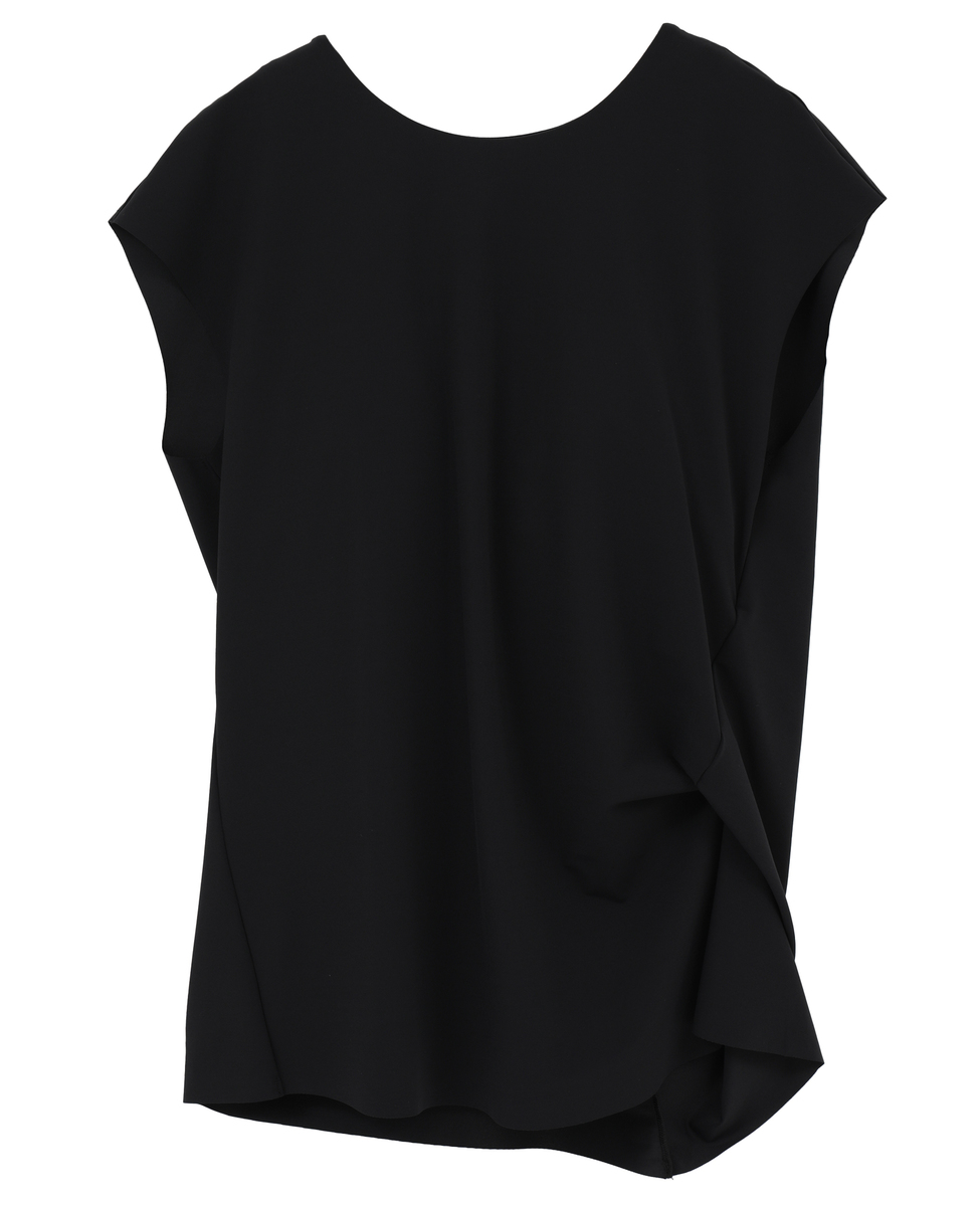 まるでブラウスのようなトップスは、二の腕、ウエスト周りをふんわりカバーしつつ、スッキリとしたシルエットです。