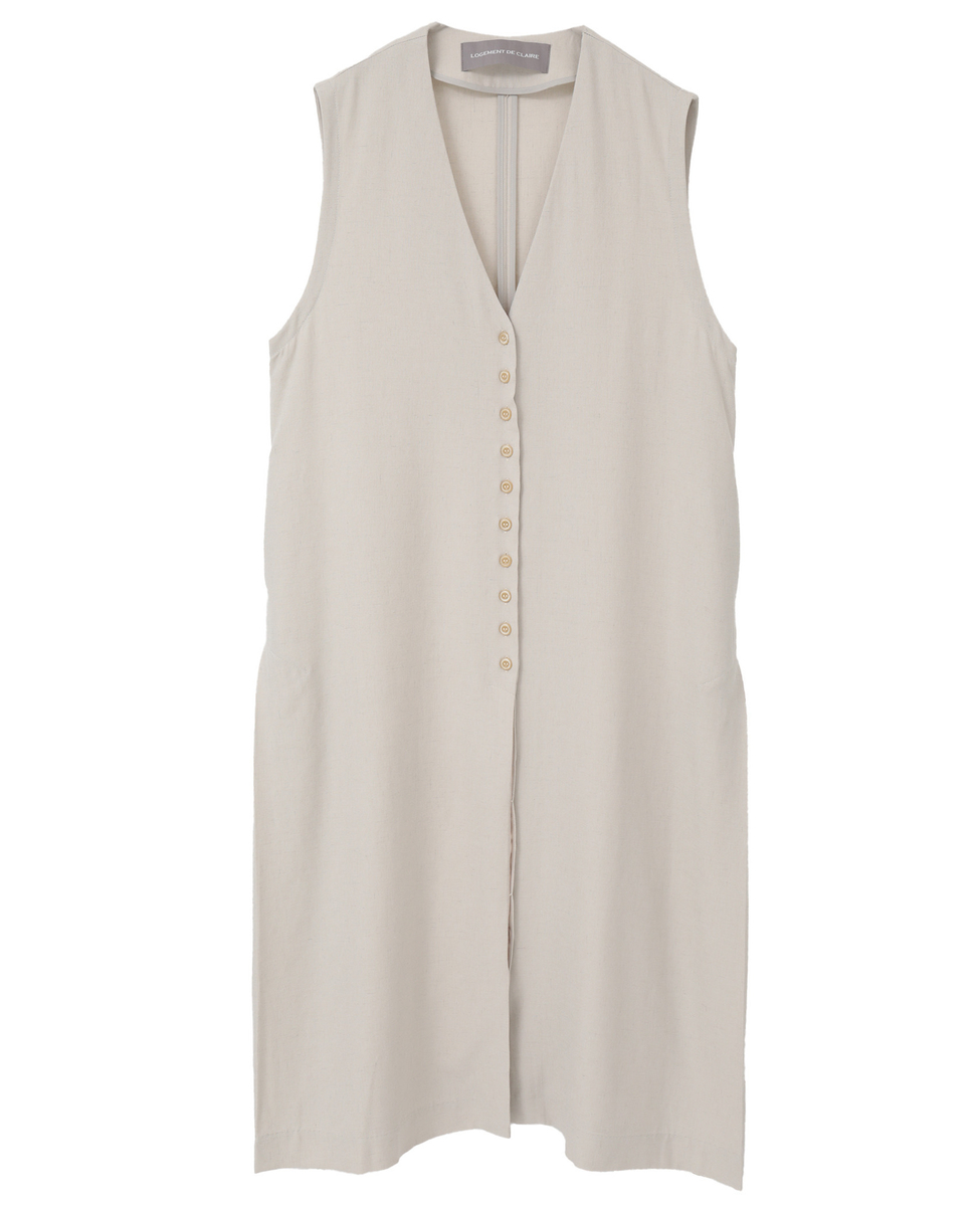 Vネックジレワンピース