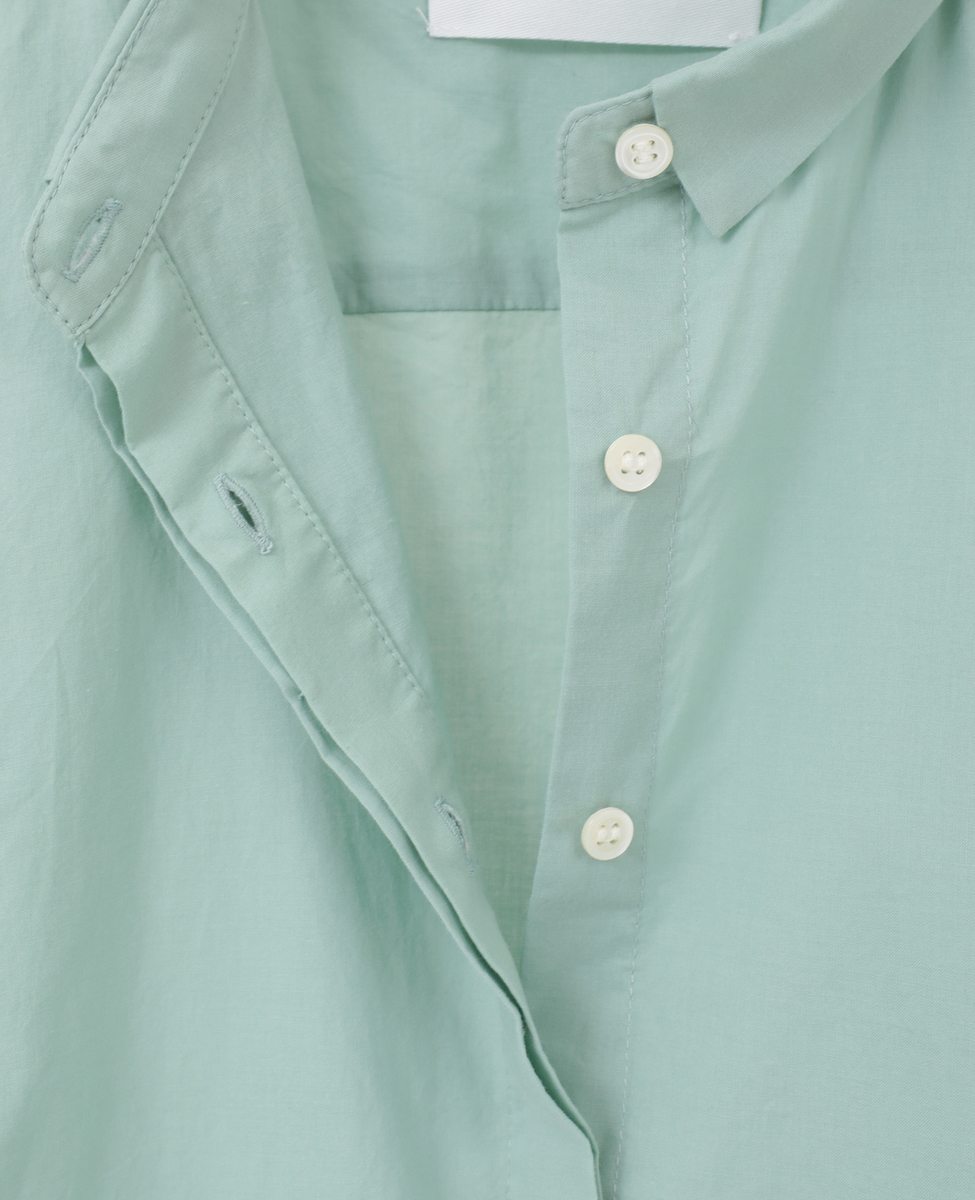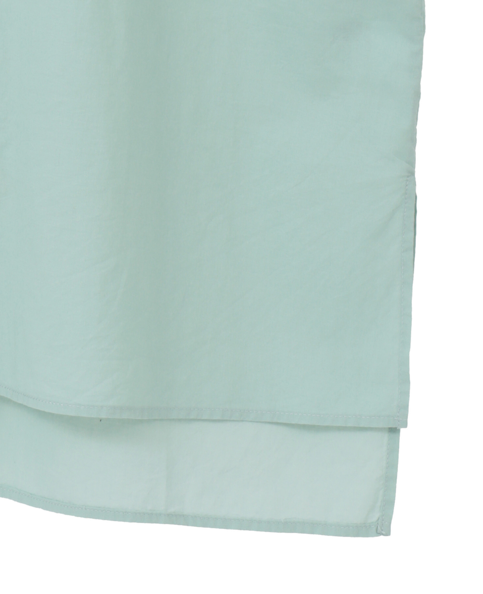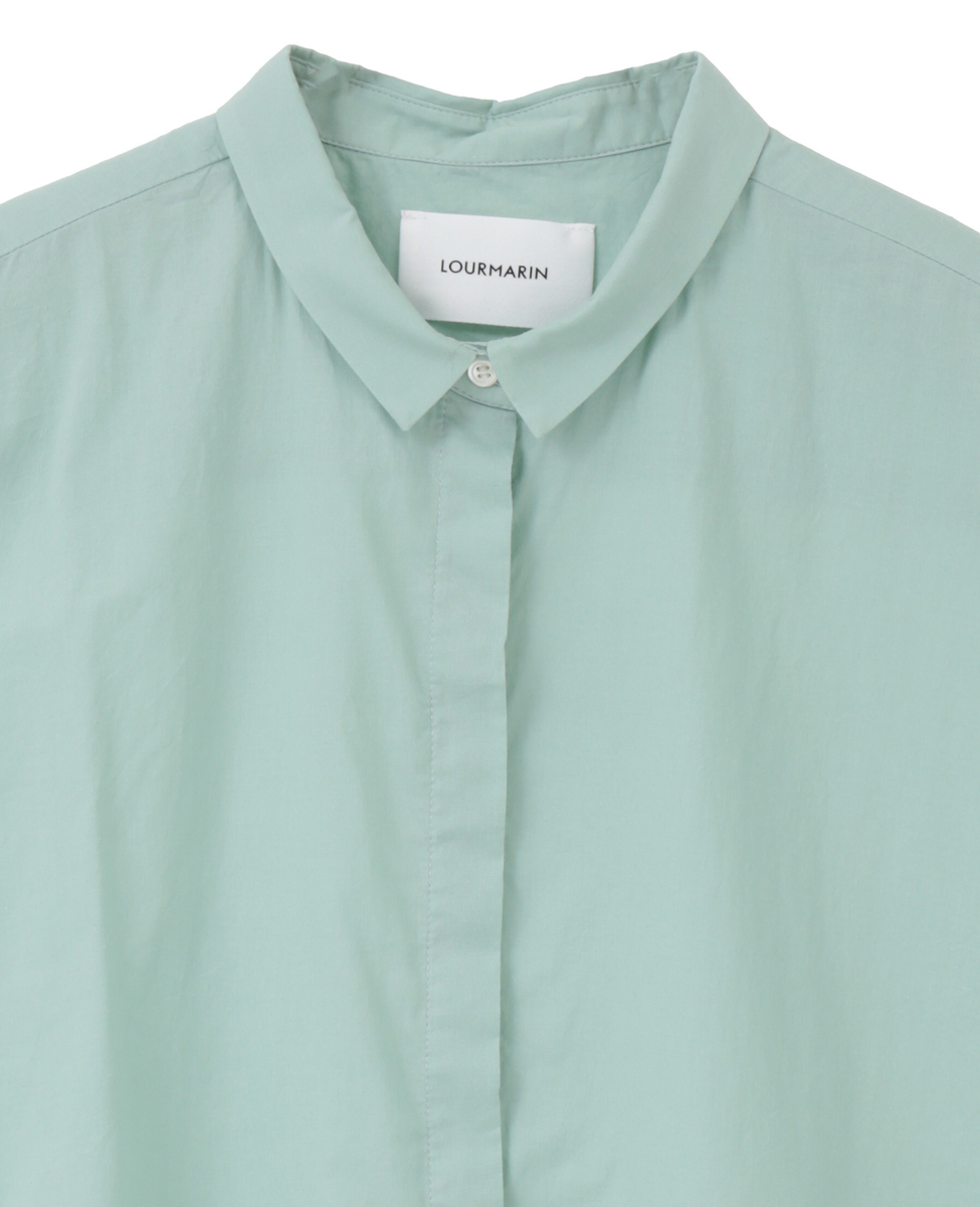 身頃続きの袖でゆったりしたシルエットのシャツ。チビ衿デザインの女性らしい印象の一枚。プリントのボトムと合わせてスッキリとした大人カジュアルなスタイルがおススメ◎