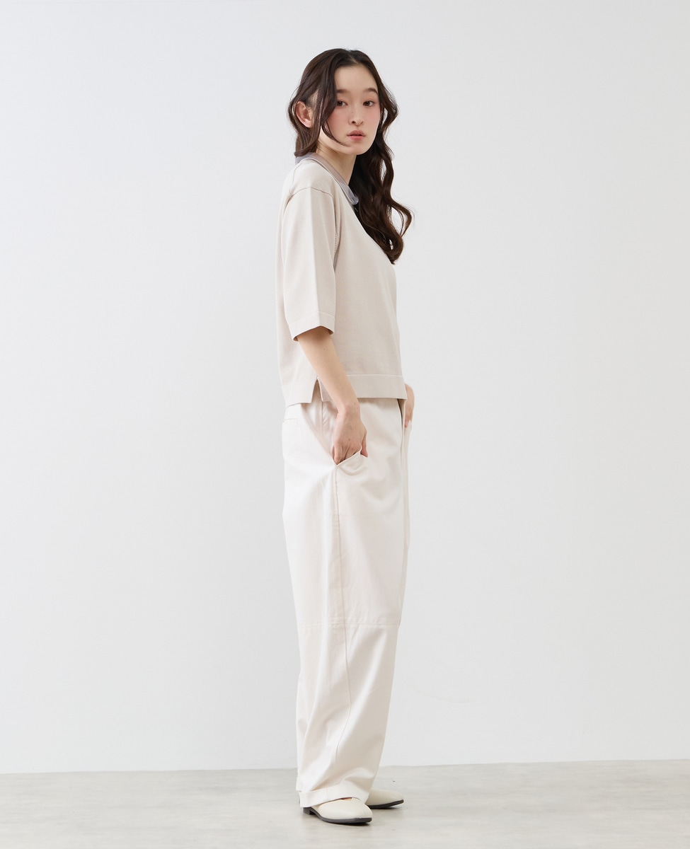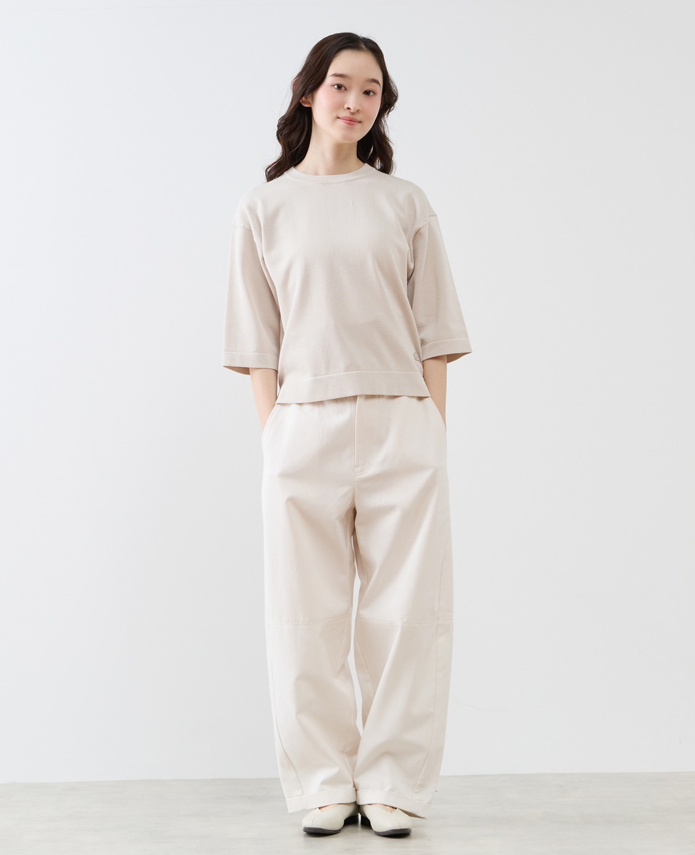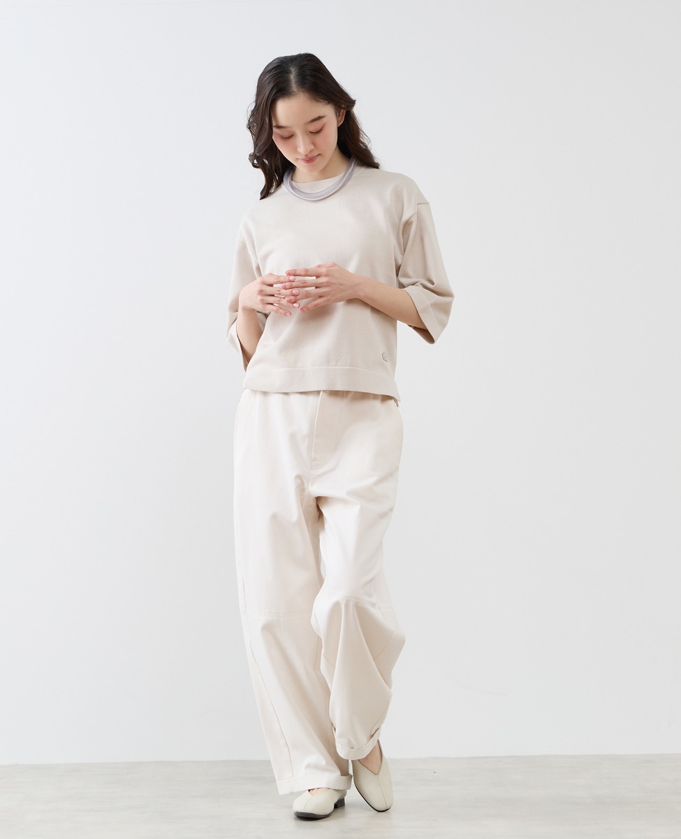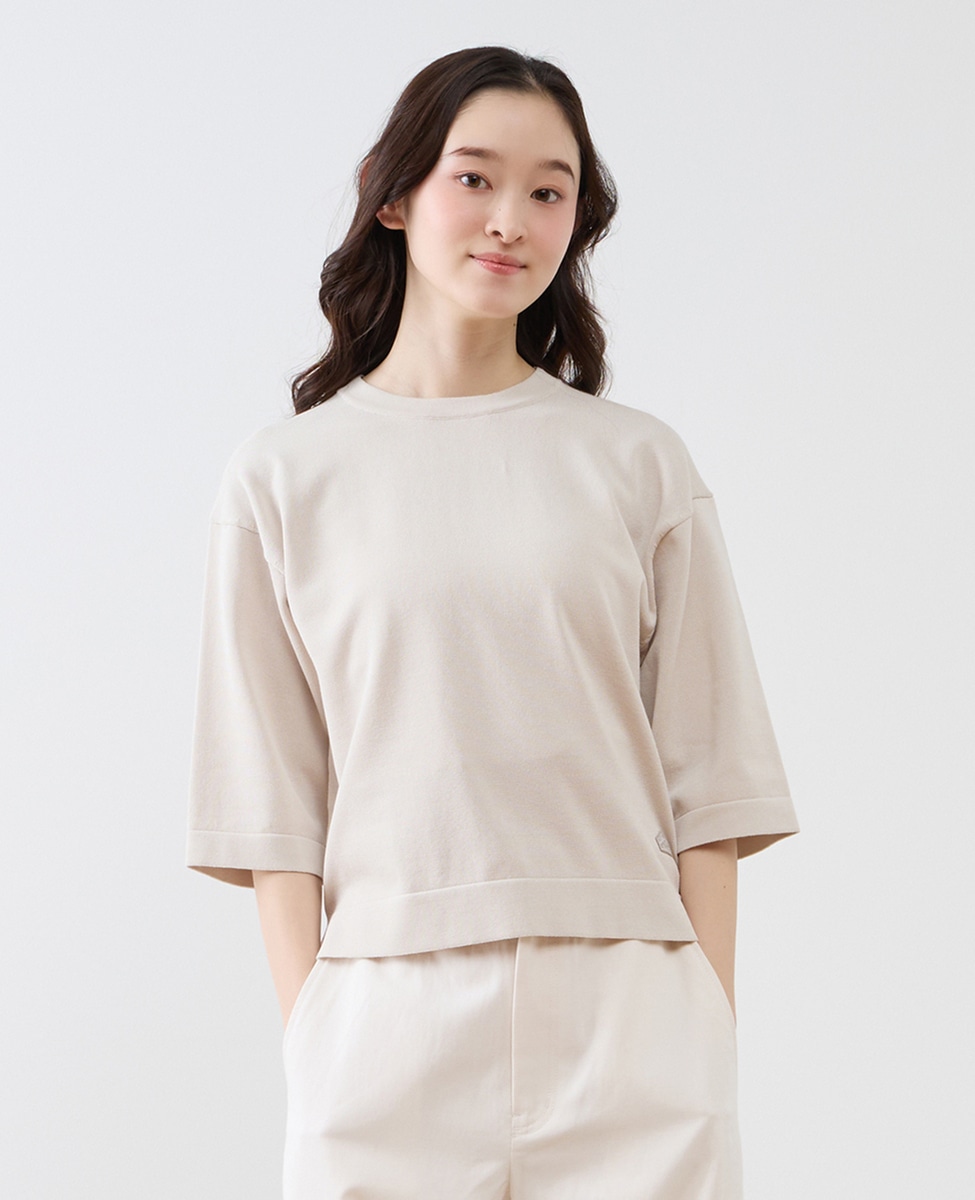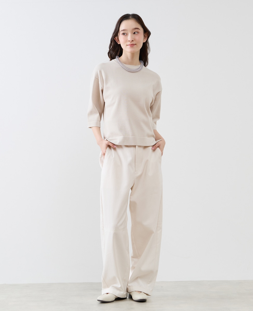 • クルーネック5分袖ニットプルオーバー 詳細画像 ライトベージュ 10