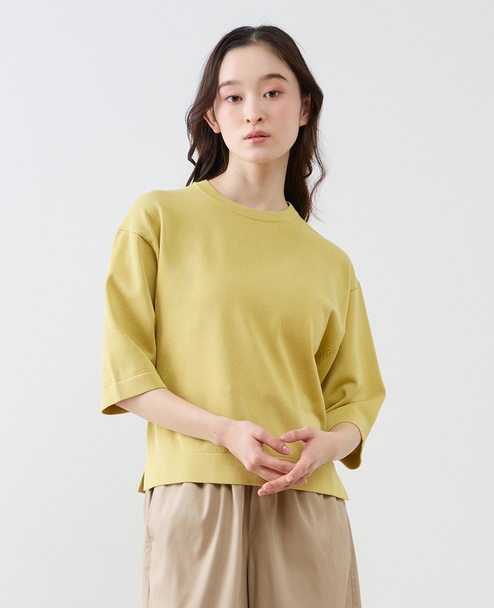 • クルーネック5分袖ニットプルオーバー 詳細画像 イエロー 7