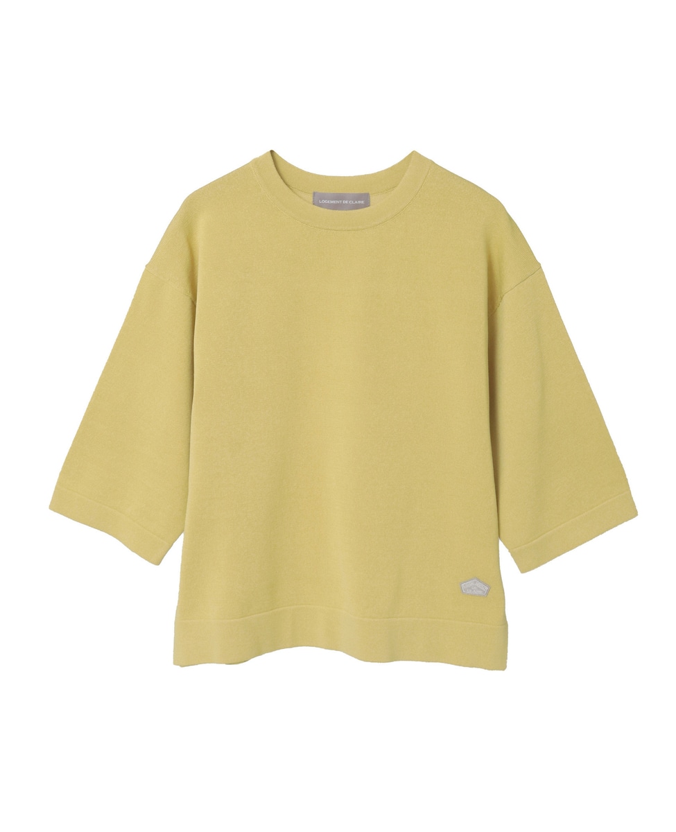 • クルーネック5分袖ニットプルオーバー 詳細画像 イエロー 1