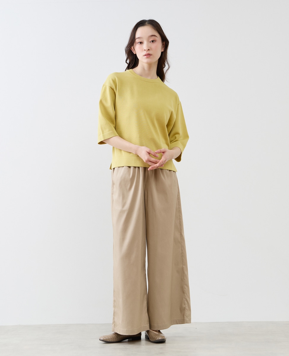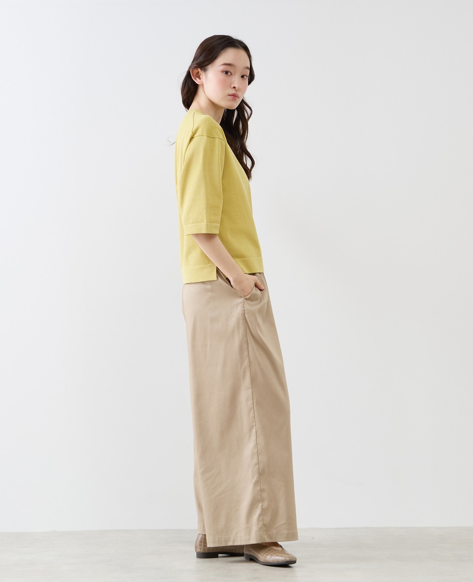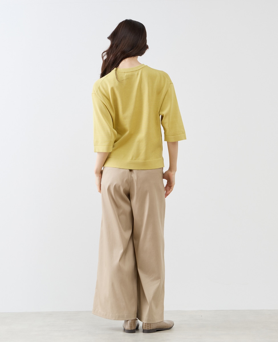 • クルーネック5分袖ニットプルオーバー 詳細画像 イエロー 10