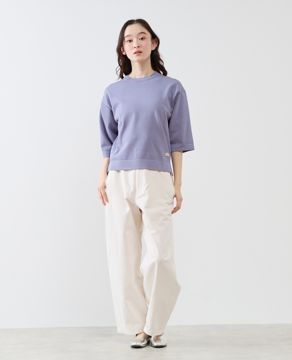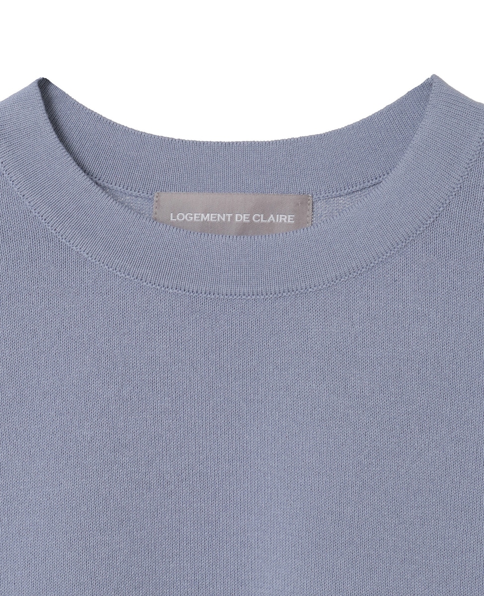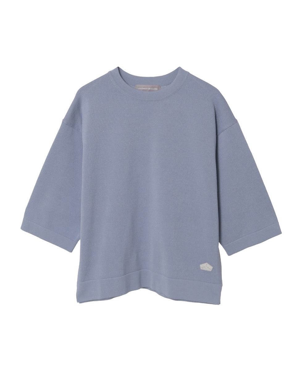 肘の隠れる袖丈のクルーネック、シンプルでインナーとしての活躍も初夏に向けて一枚着で大人っぽく着用もしていただけます。フロント左裾にLOGEMENT DE CLAIRE のフエルトワッペンが付きます。同じ編地のカーディガンと合わせても素敵です。